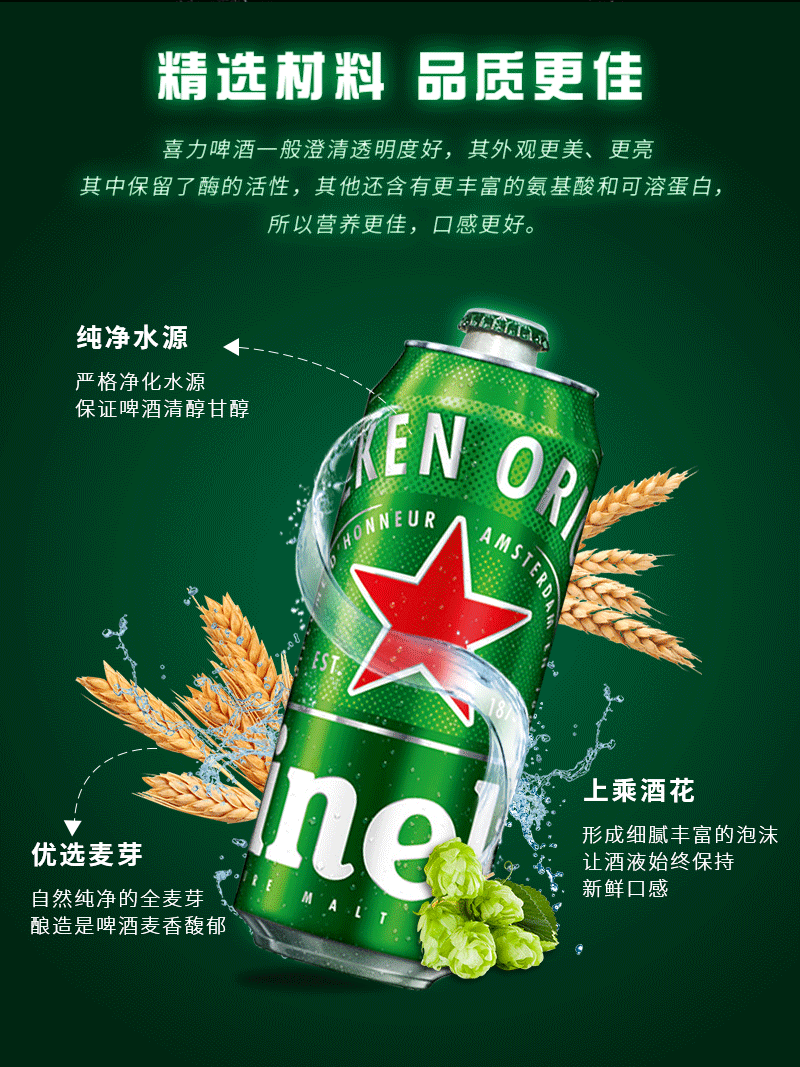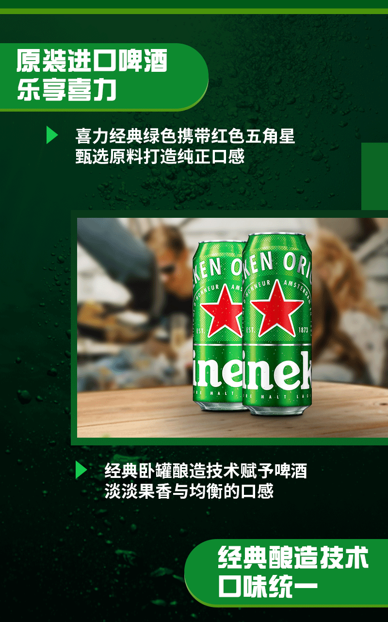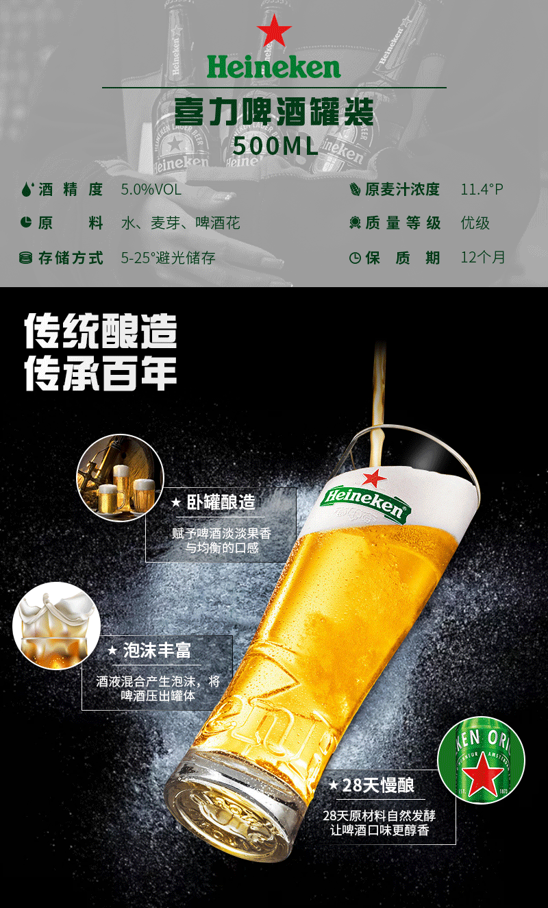 荷兰进口喜力易拉罐 5.0%VOL 500ml*24罐