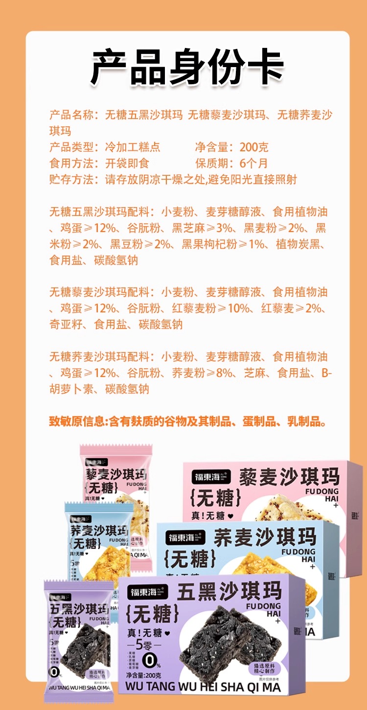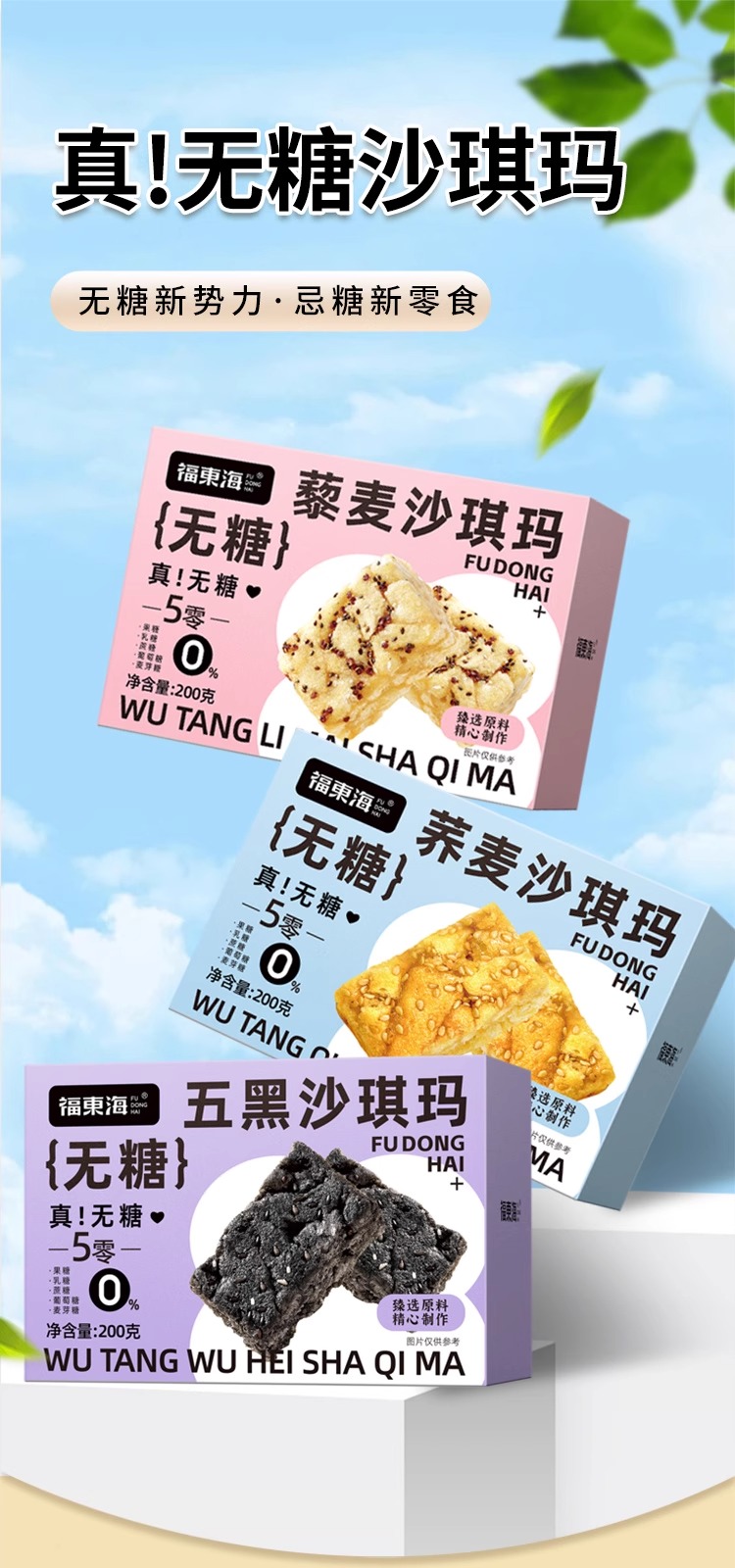 福东海 无糖沙琪玛五黑沙琪玛藜麦沙琪玛荞麦沙琪玛早餐健康零食 200克