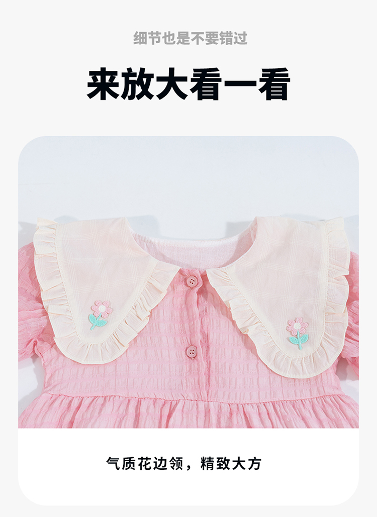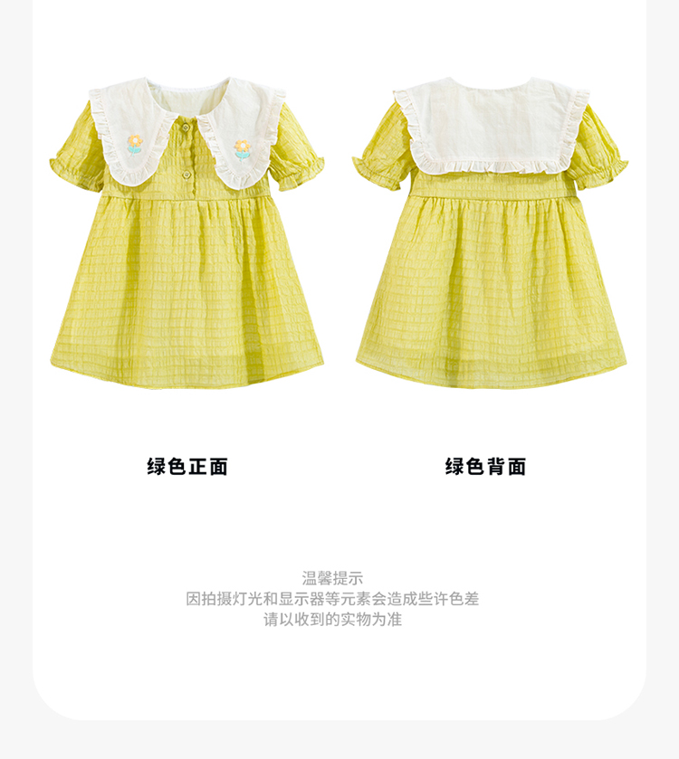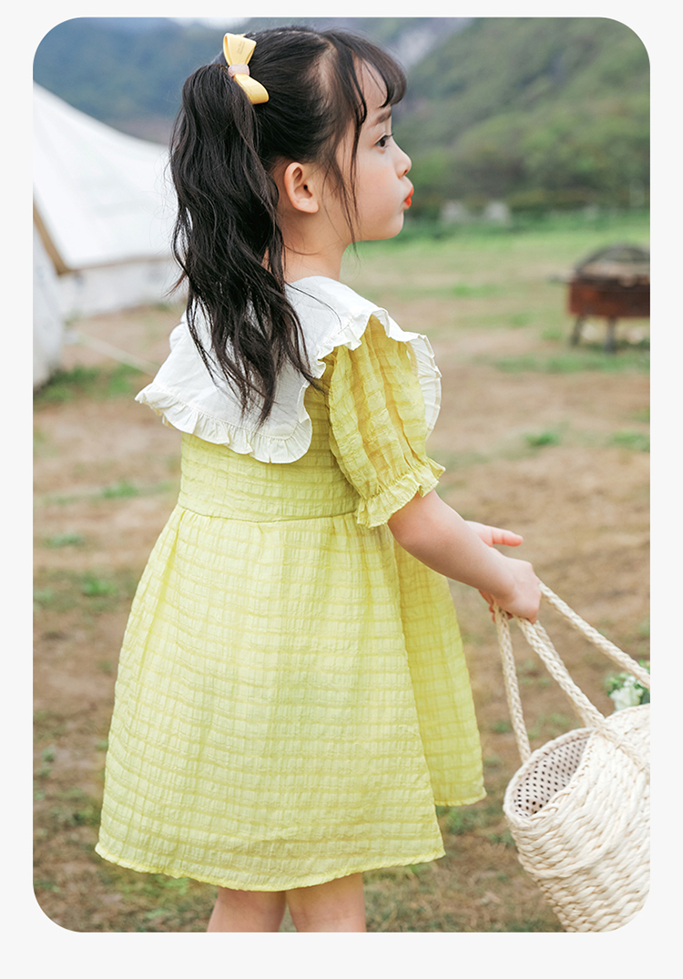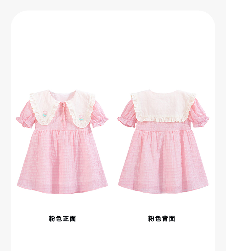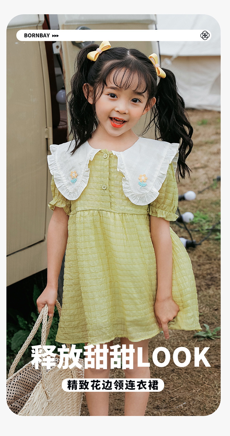 贝贝怡女童花边领短袖连衣裙优雅法式风公主蓬蓬裙女孩洋气裙子