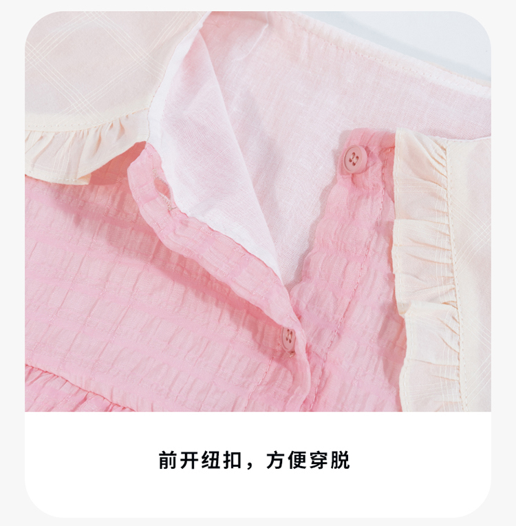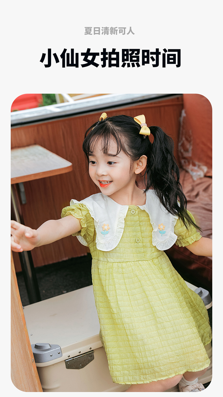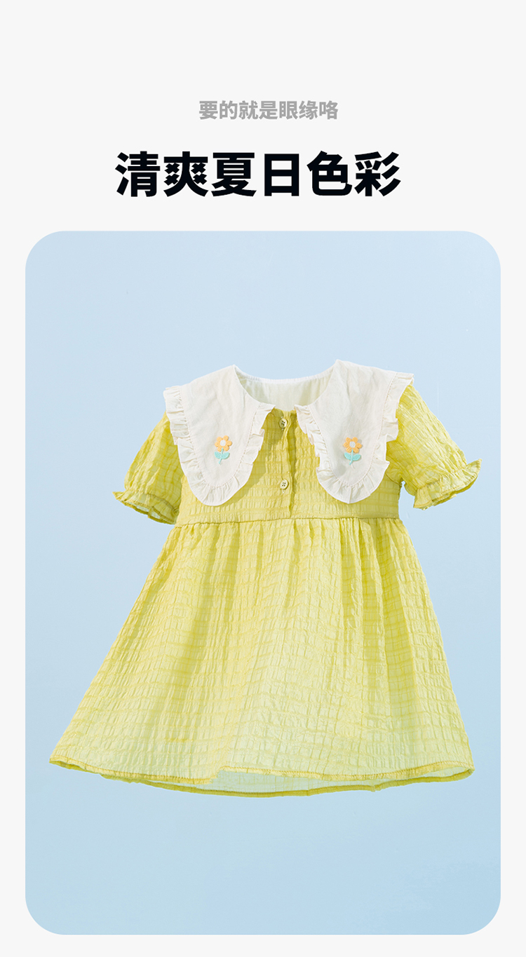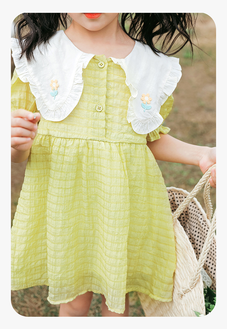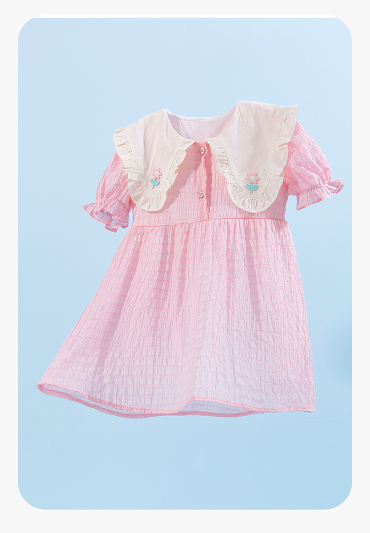 贝贝怡女童花边领短袖连衣裙优雅法式风公主蓬蓬裙女孩洋气裙子