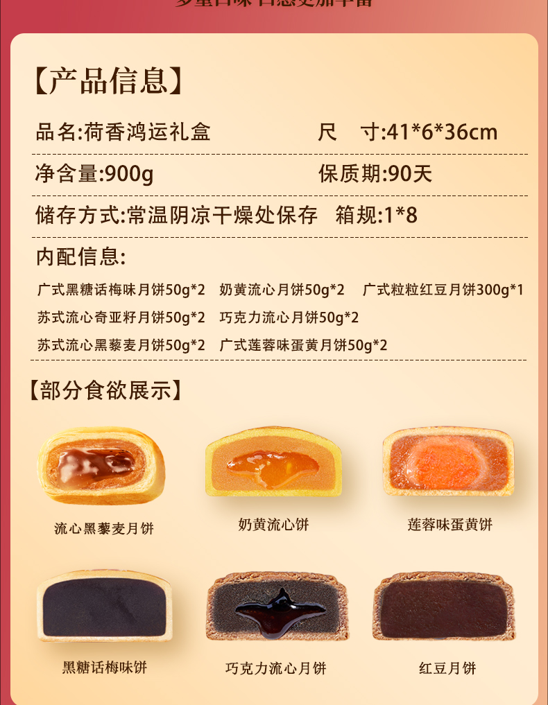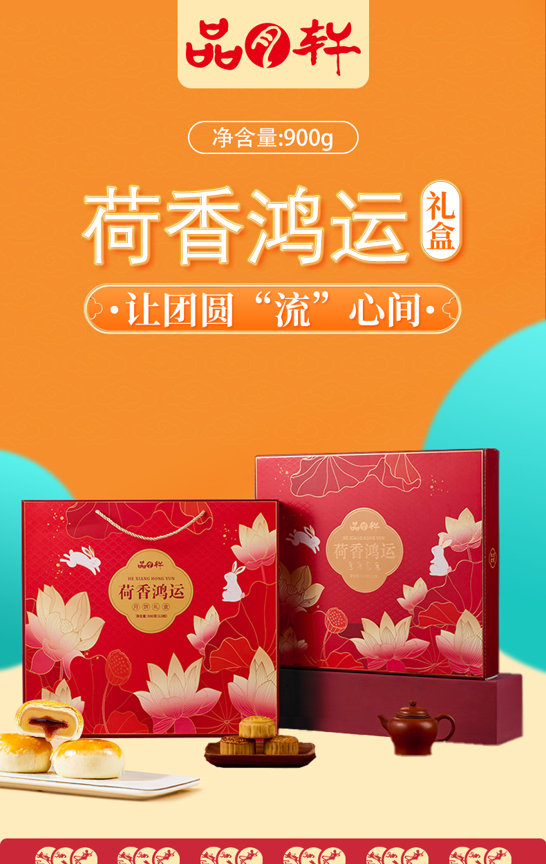 品月轩月饼礼盒荷香鸿运 900g(13枚)