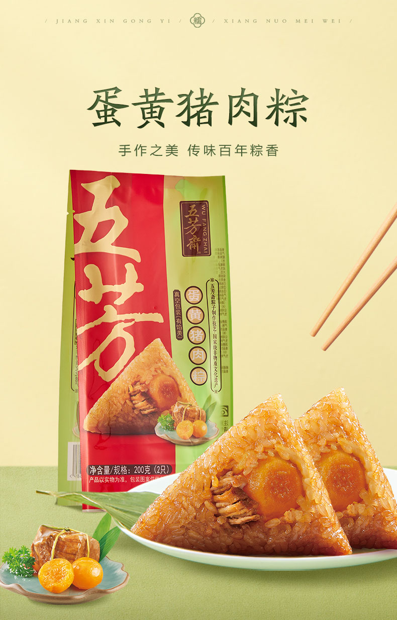 五芳斋嘉兴粽子 蛋黄猪肉粽 100克*2只