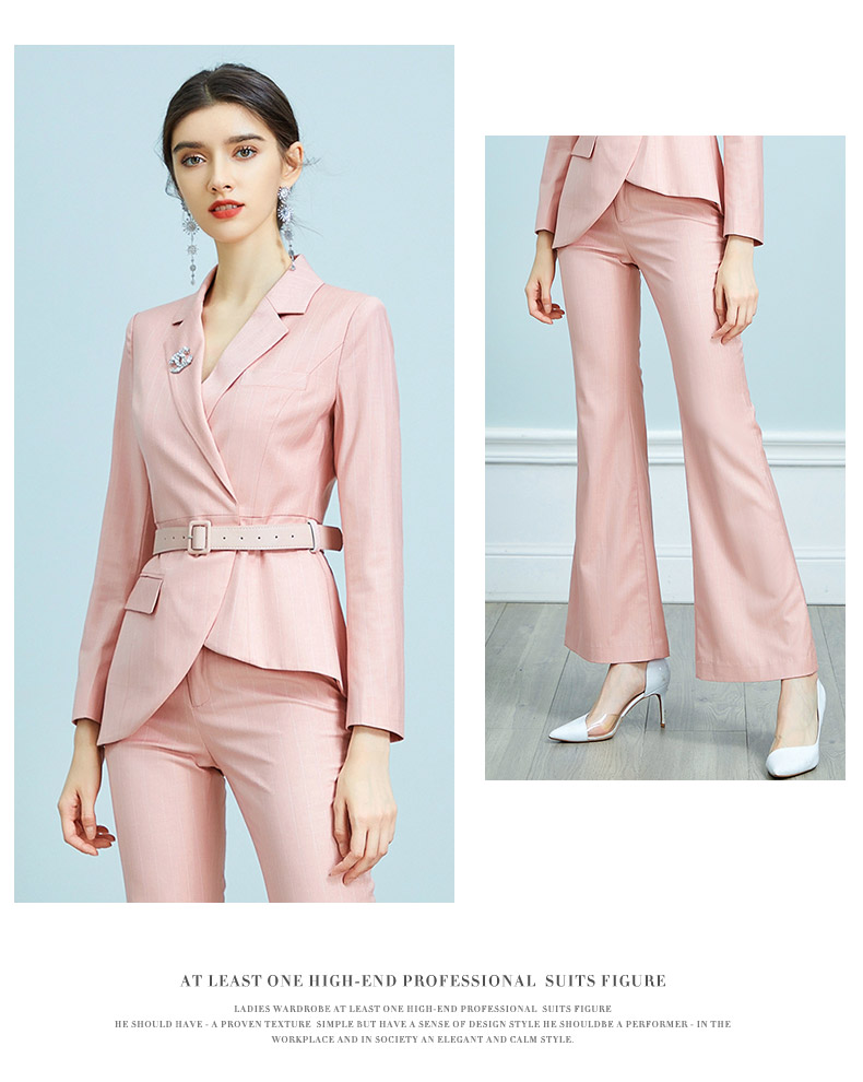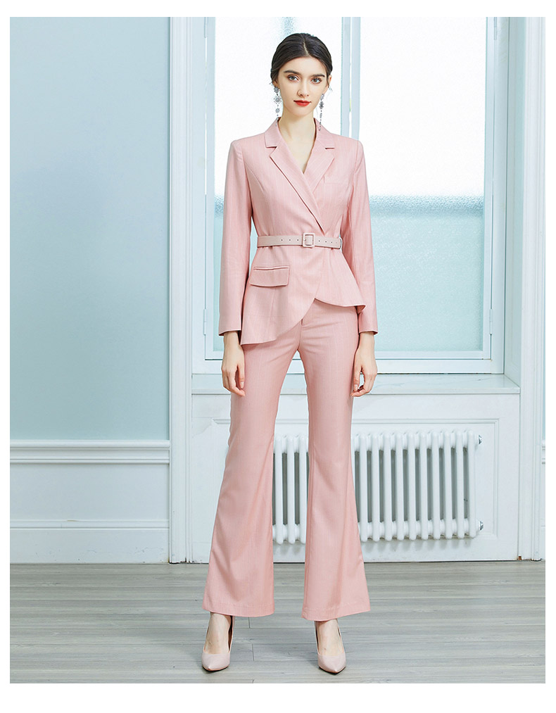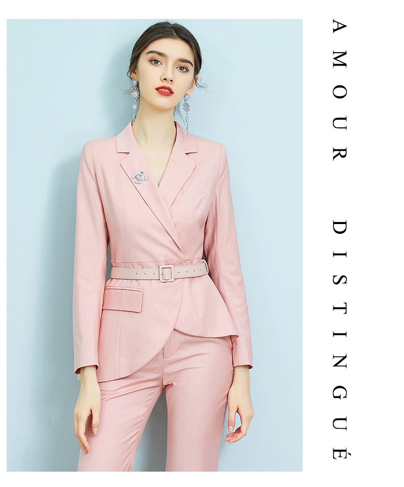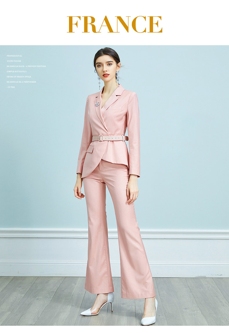 AD职业装气质女神范时尚修身粉色西装阔腿裤套装洋气名媛正装春季