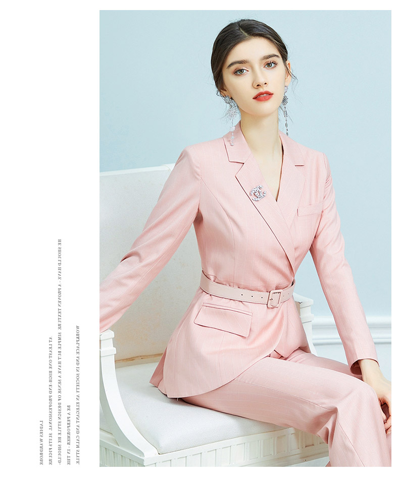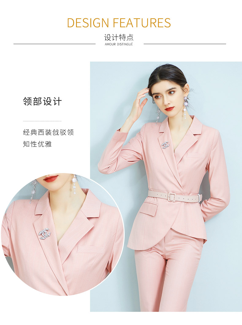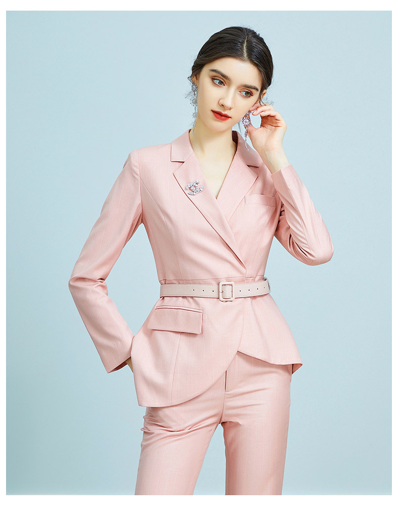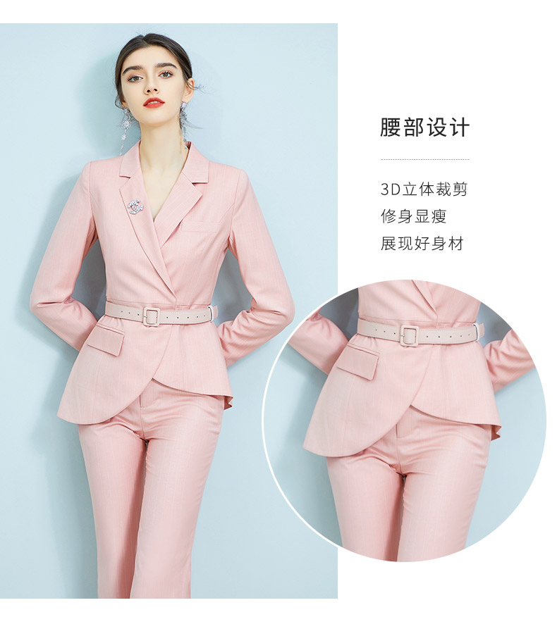 AD职业装气质女神范时尚修身粉色西装阔腿裤套装洋气名媛正装春季