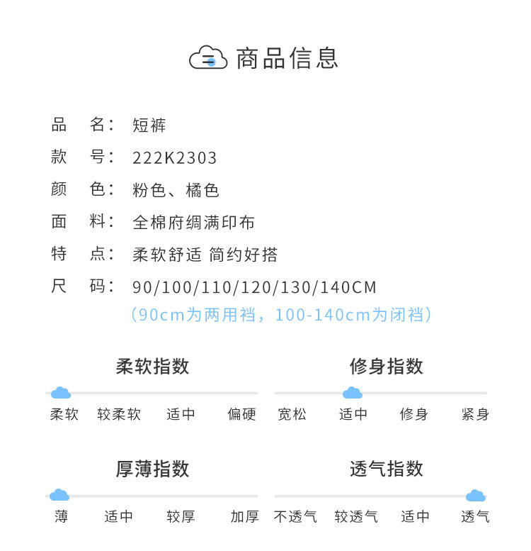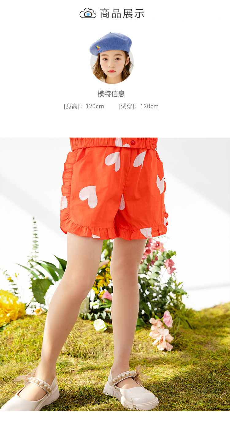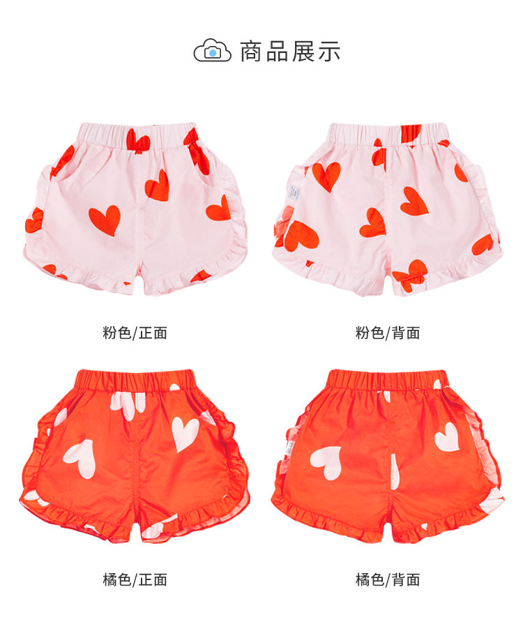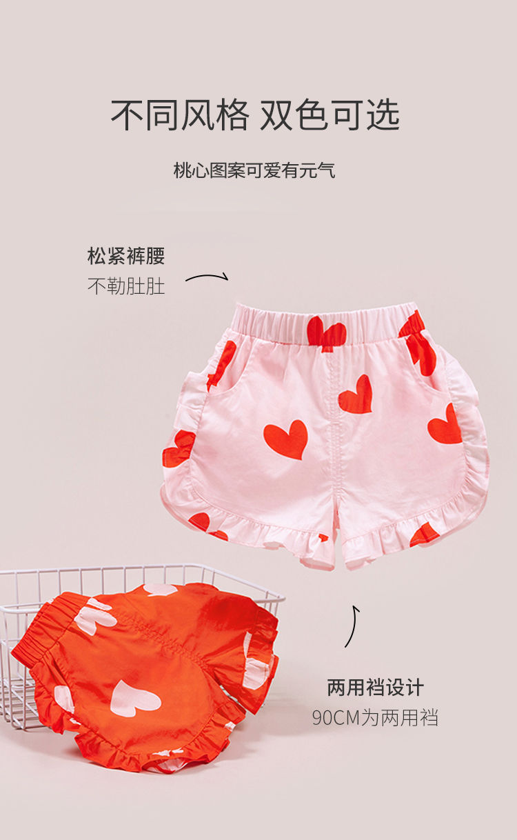 贝贝怡女童短裤公主风潮流透气舒适松紧腰短裤新款女宝甜美风裤子