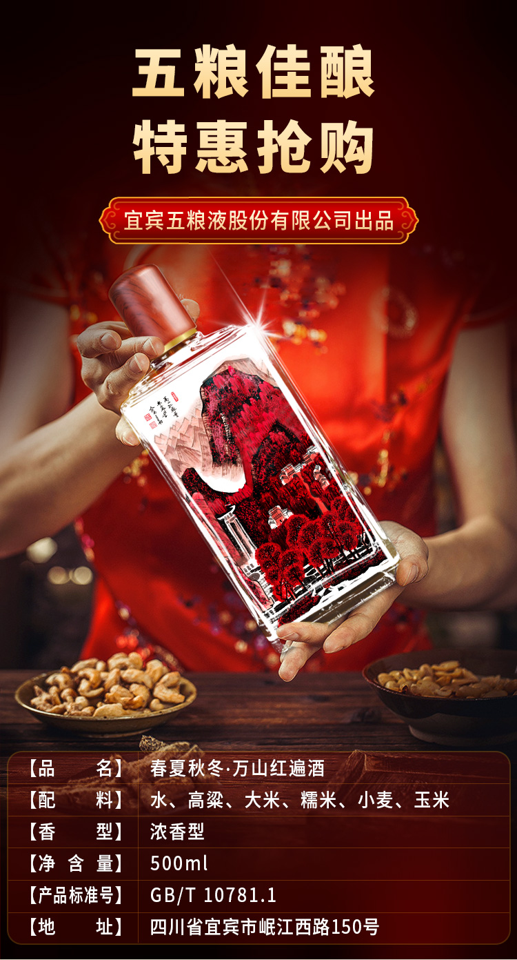 氧气专属【好酒破价!•五粮液万山红遍酒】宜宾五粮液总厂出品!国标优级 52度经典浓香 纯粮酿造 “酒中有画,画中有酒” 首次破价!(499元一箱送酒具)