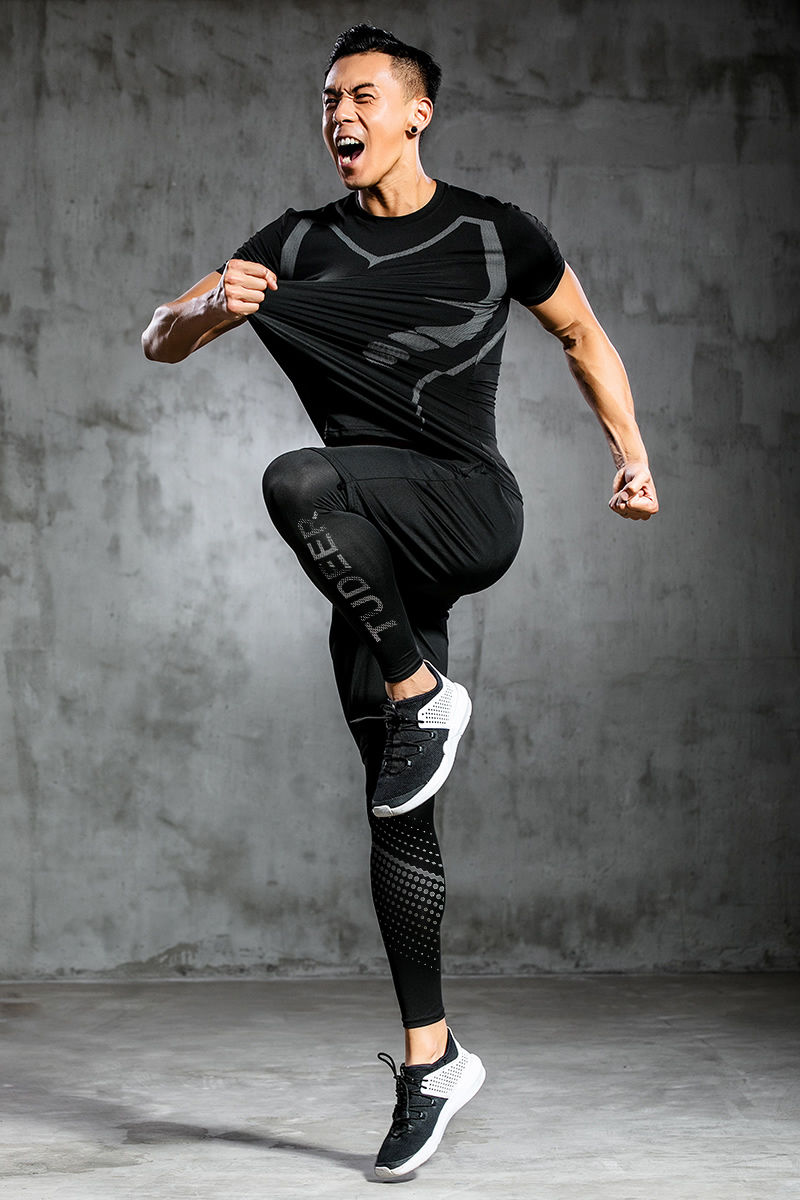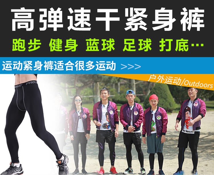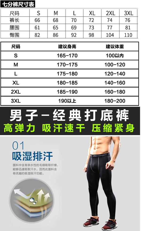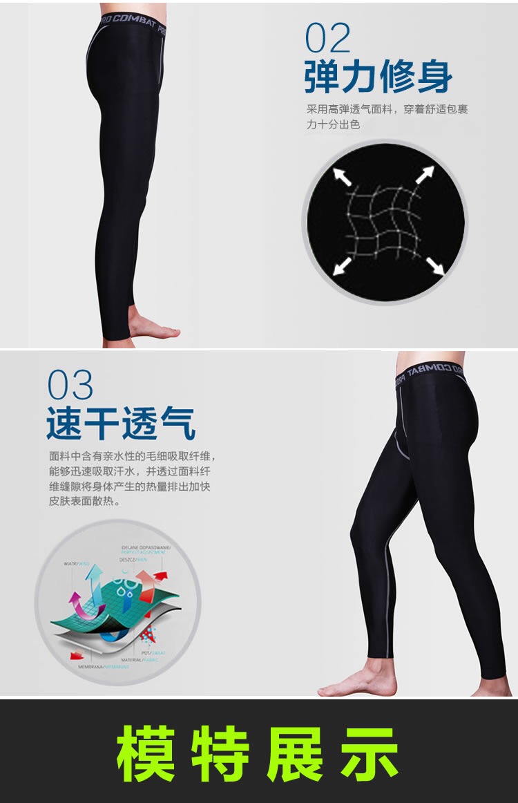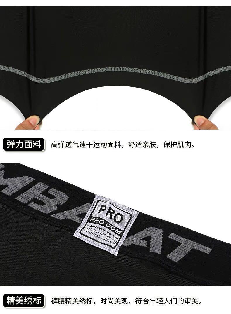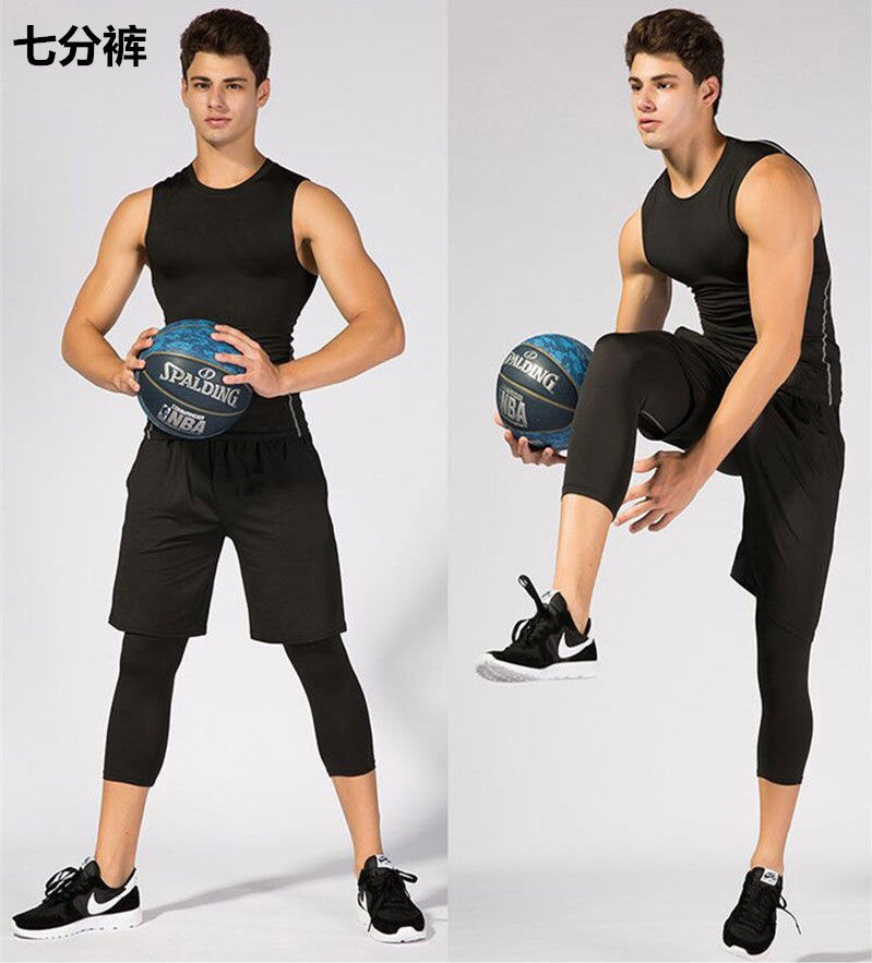 运动紧身长裤男跑步训练健身服篮球七分高弹
