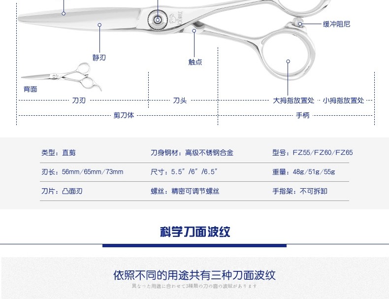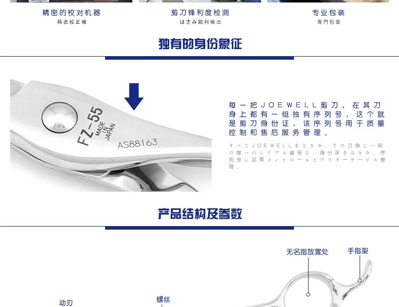 JOEWELL井上鸡牌日本原装进口FZ55专业美发A型直剪专用正品剪刀
