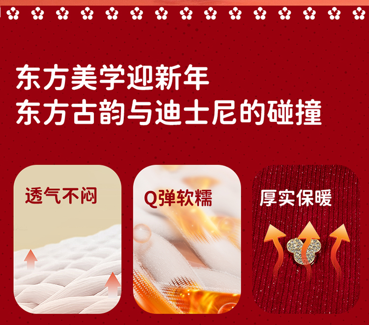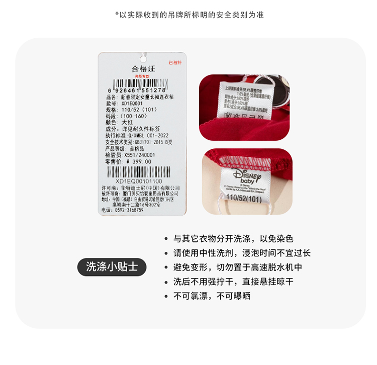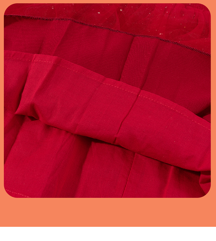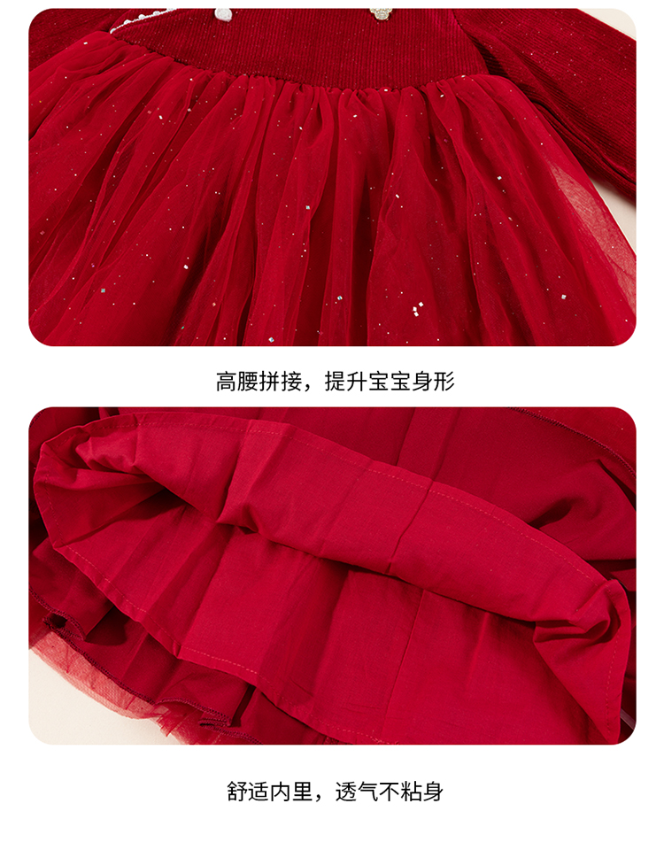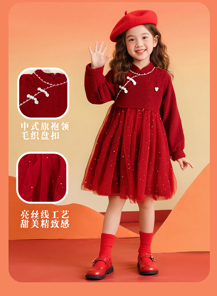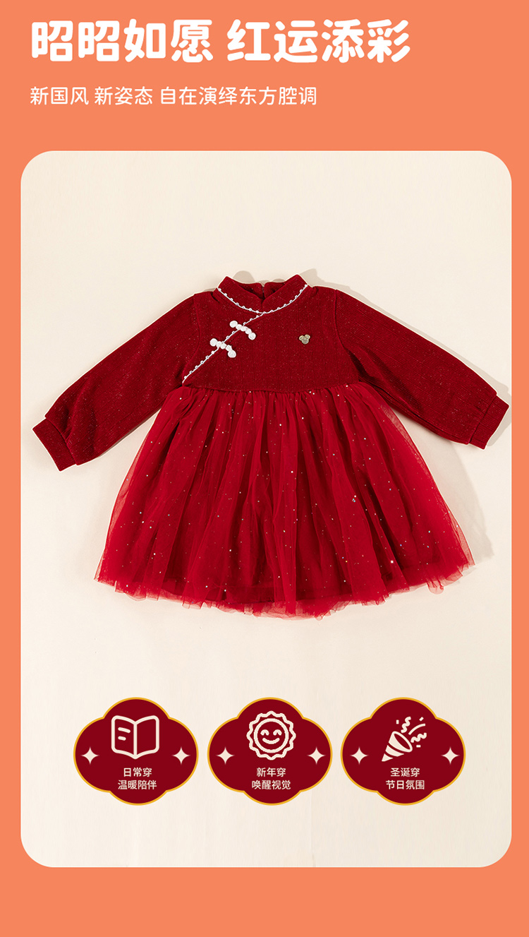 迪士尼春秋新款女童国风长袖连衣裙国潮大红洋气公主裙XD1EQ001