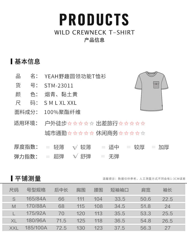 SANFO PLUS STC-23011 YEAH野趣圆领功能T恤衫