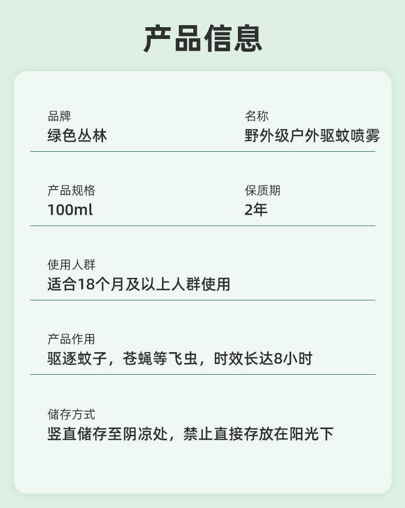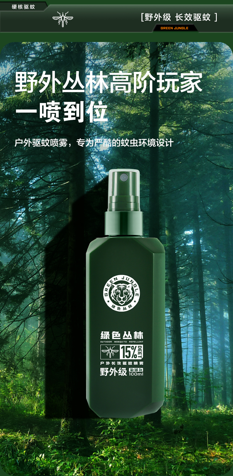绿色丛林长效驱蚊露100ML户外防蚊液避蚊胺蚊虫
