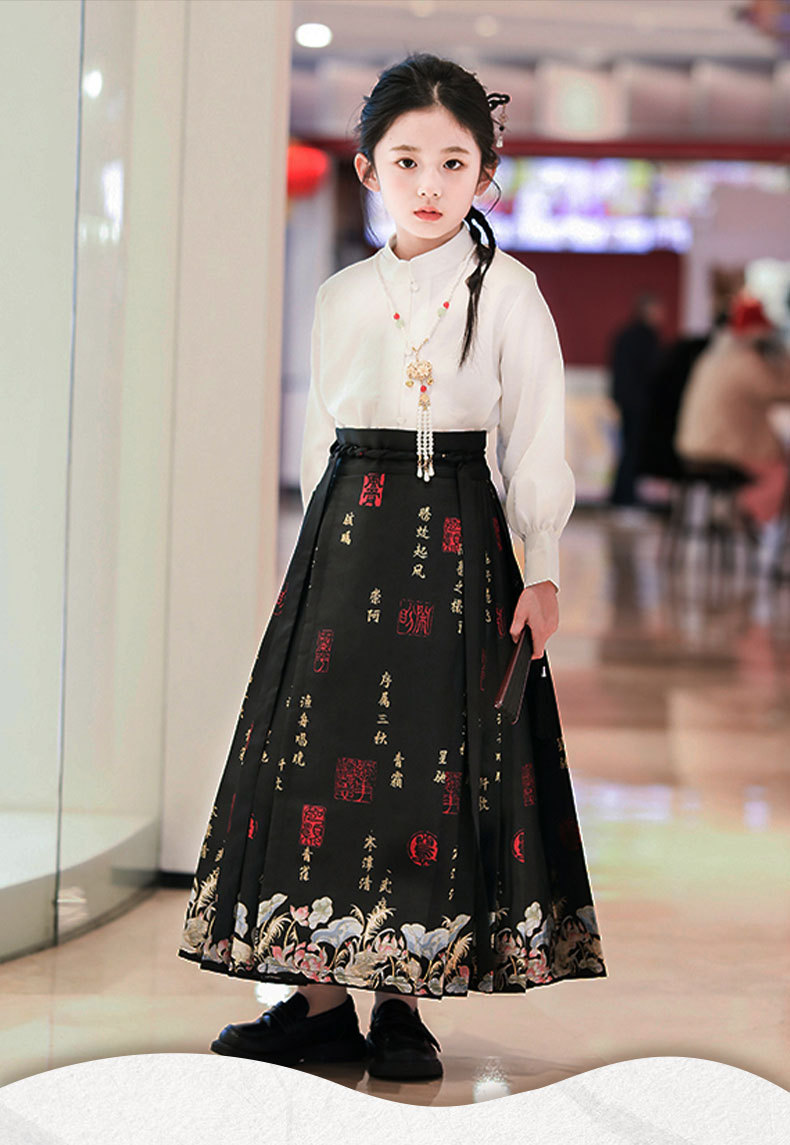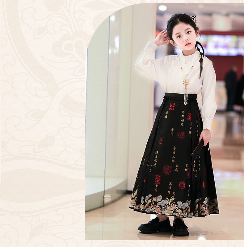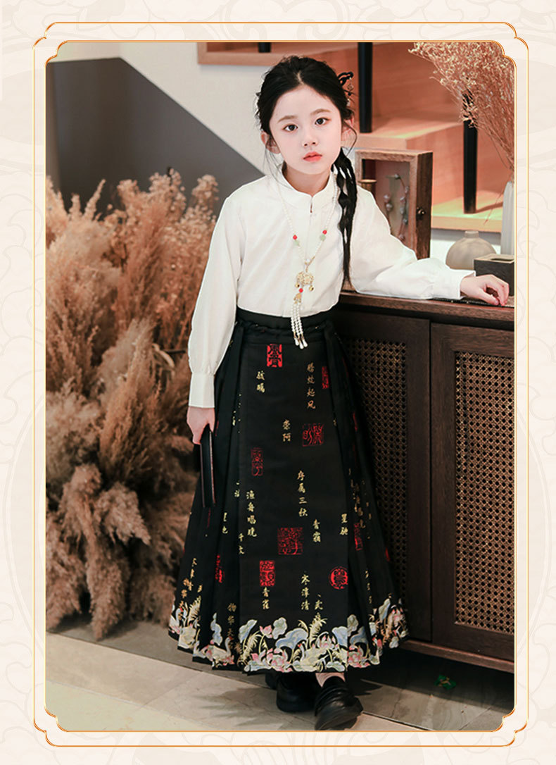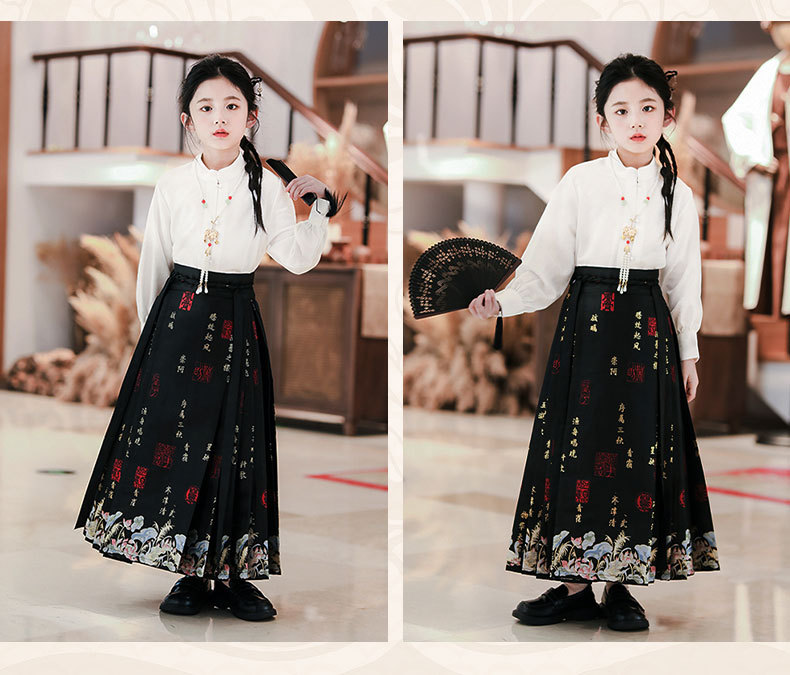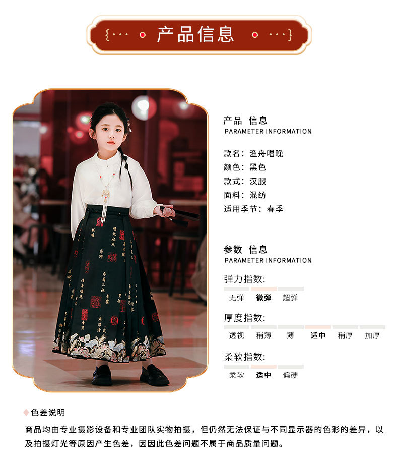 【渔舟唱晚马面裙】汉服女童2024龙年春秋新款小女孩古风唐装超仙中式马面裙演出