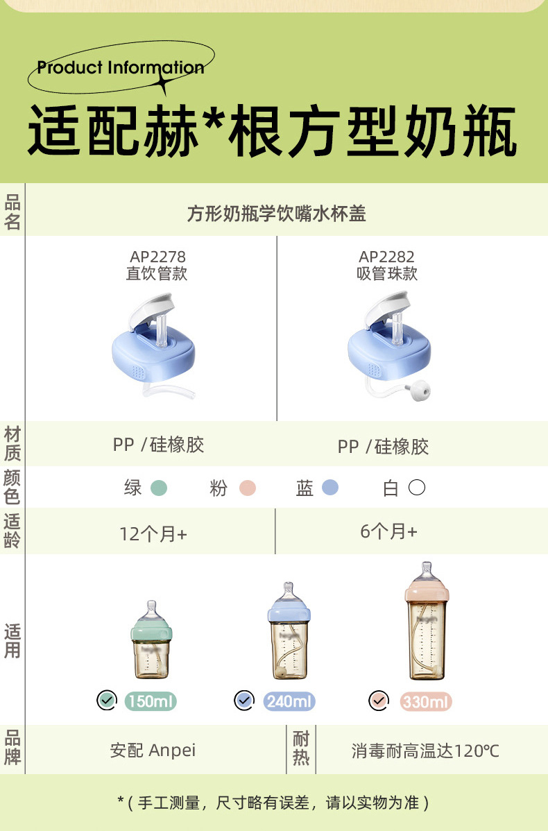 安配适配赫根奶瓶配件吸管重力球学饮杯盖喝饮水直饮盖水杯头盖子