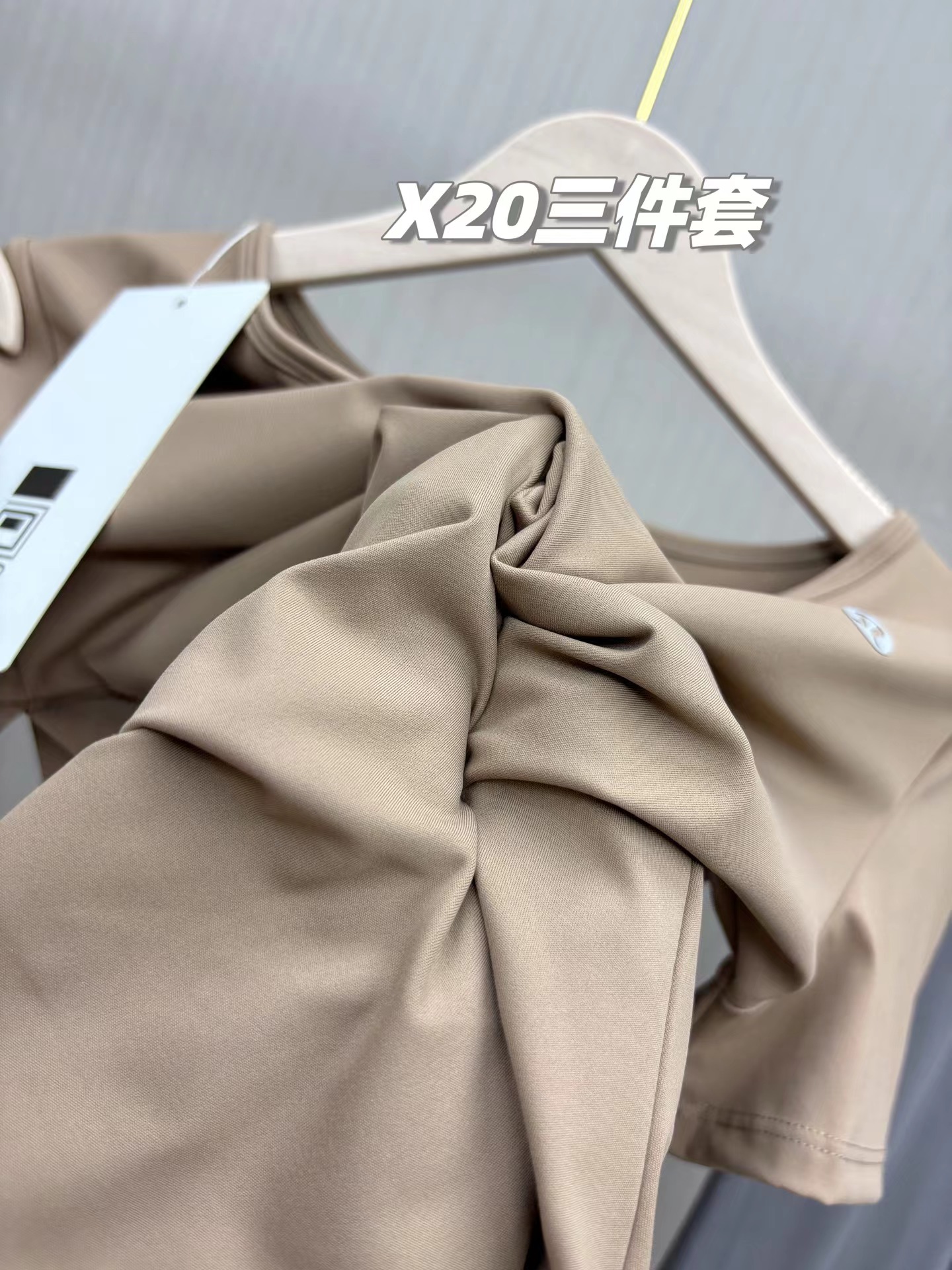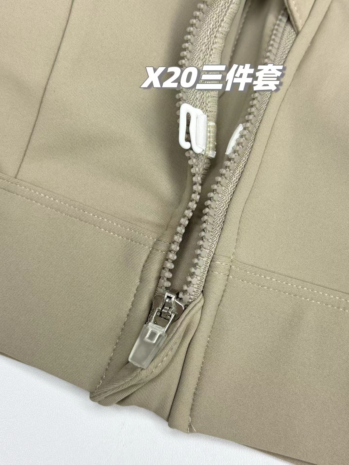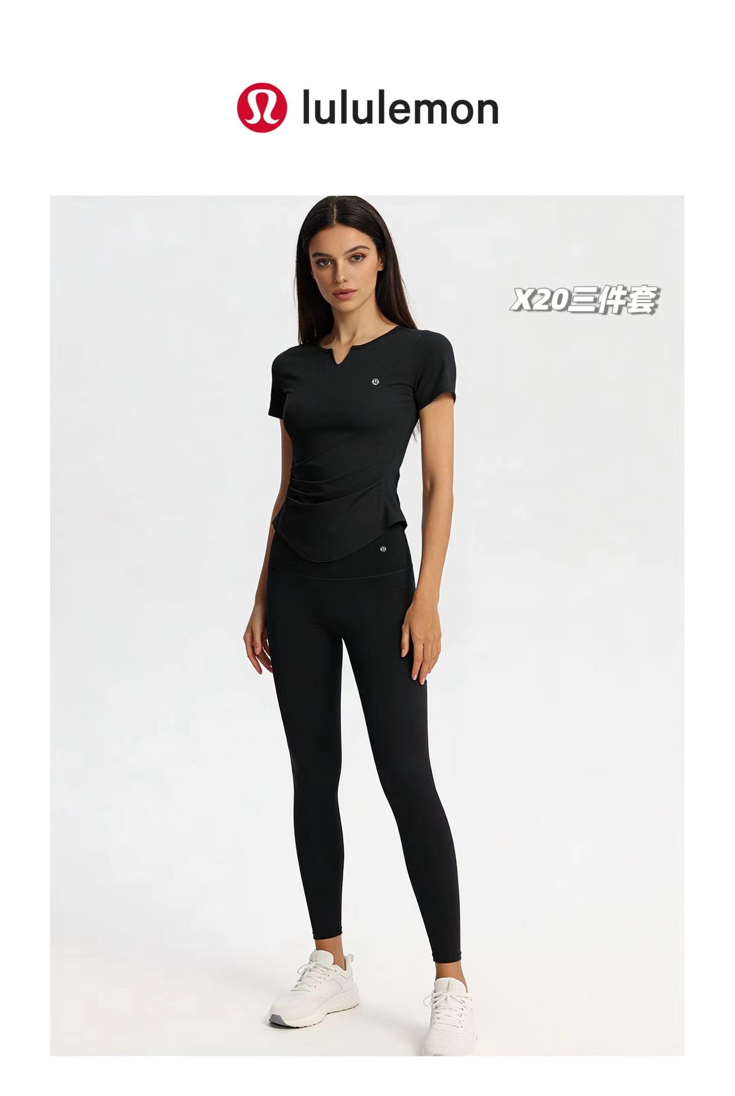 双面真裸感!全场景适用 运动瑜伽三件套!双面客供Nulu云感面料,全氨纶+锦纶,不含一点涤纶!!前拉链防震内衣+T恤+瑜伽裤,满足日常出行的穿搭!不管是各种运动健身跑步,还是日常休闲 上班 出行,这款真的嗨翻全场 全场景通用!75%锦纶+25%氨纶,双面裸感因子,犹如di二层肌肤!全部chao级立体版型,专门为亚洲女性身材设计的版型,不管什么身材,外套上身jue对有小蛮腰!瑜伽裤后腰有隐藏式口袋,可放手机及运动毛巾!T恤褶皱收腰设计,版型超立体。亲身体验,原单面料上身就是各种舒服,chao级裸感体验,料子很韧弹,三件衣服都适合高强度运动,内衣前置拉链,防震效果chao级好。全场景通用的款式,日常通勤也是chao级舒服的,不像其他运动类的衣服,只能运动的时候穿。真的大爱,建议两套入!