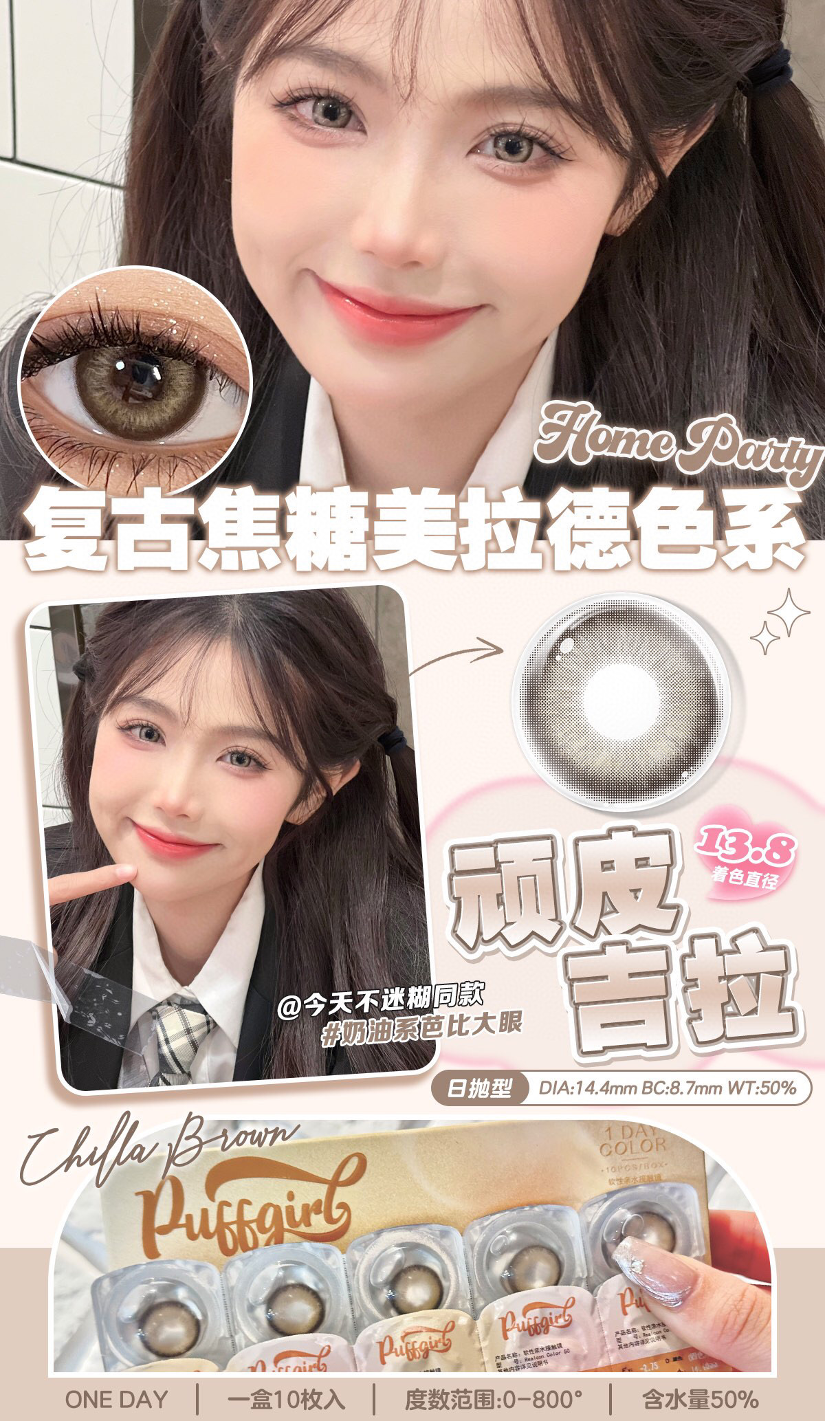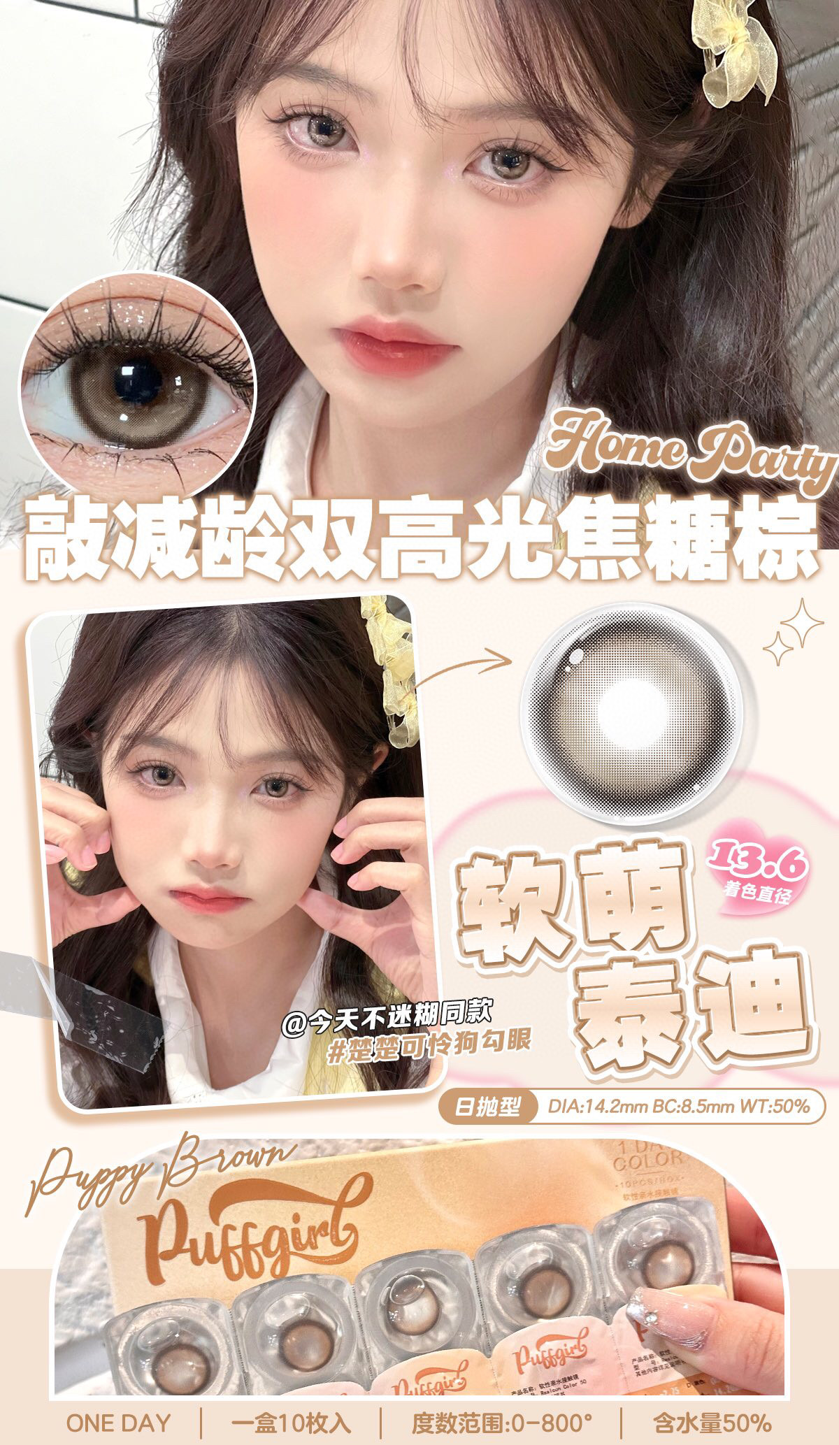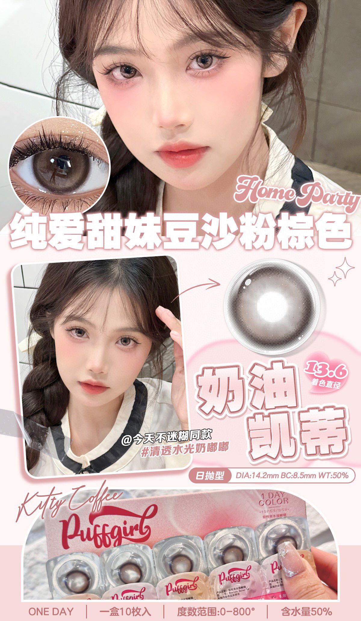 【活动】PUFF GIRL日抛 新品 奶油凯蒂/软萌泰迪/冰栗子/蓝胖子/布偶甜心/纯真小鹿/神秘黑猫/脸红兔兔/顽皮吉拉/小熊欧尼/起司泡泡 中大直径美瞳 日常显色自然推荐 小红书热门爆款
