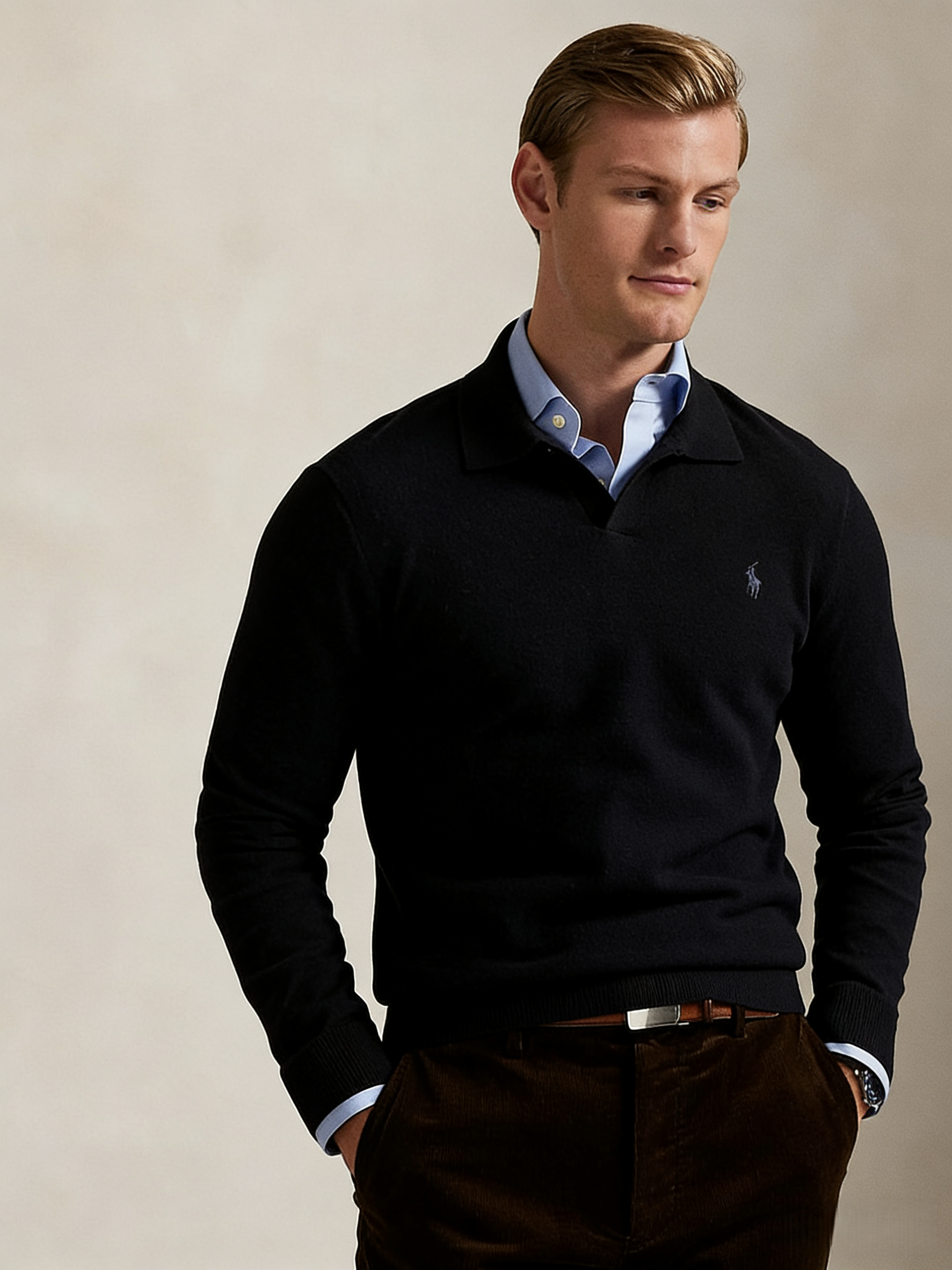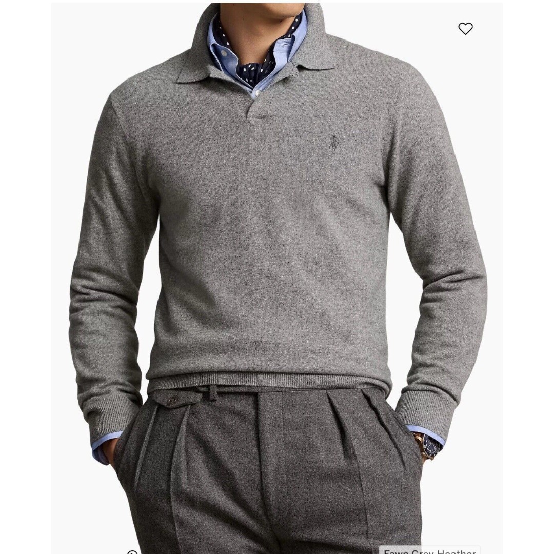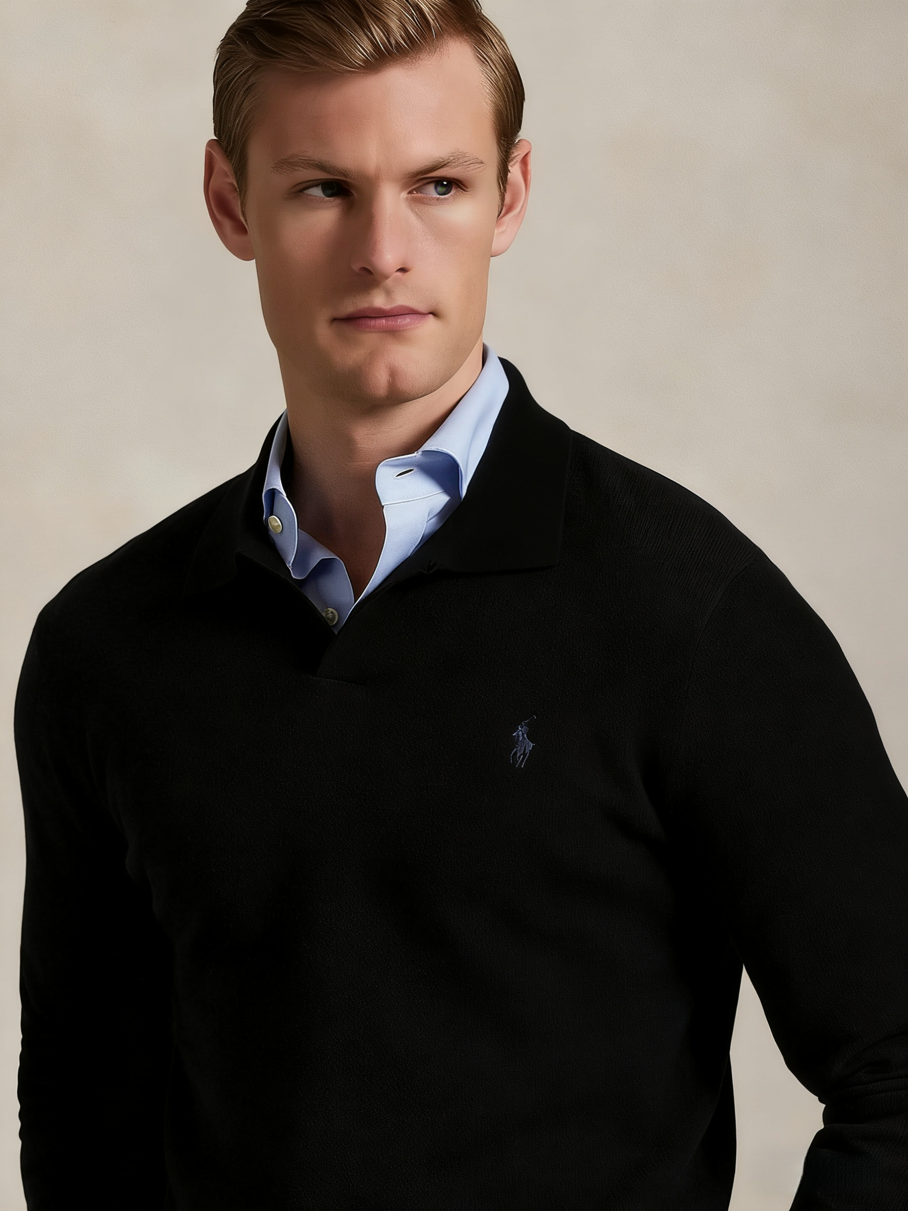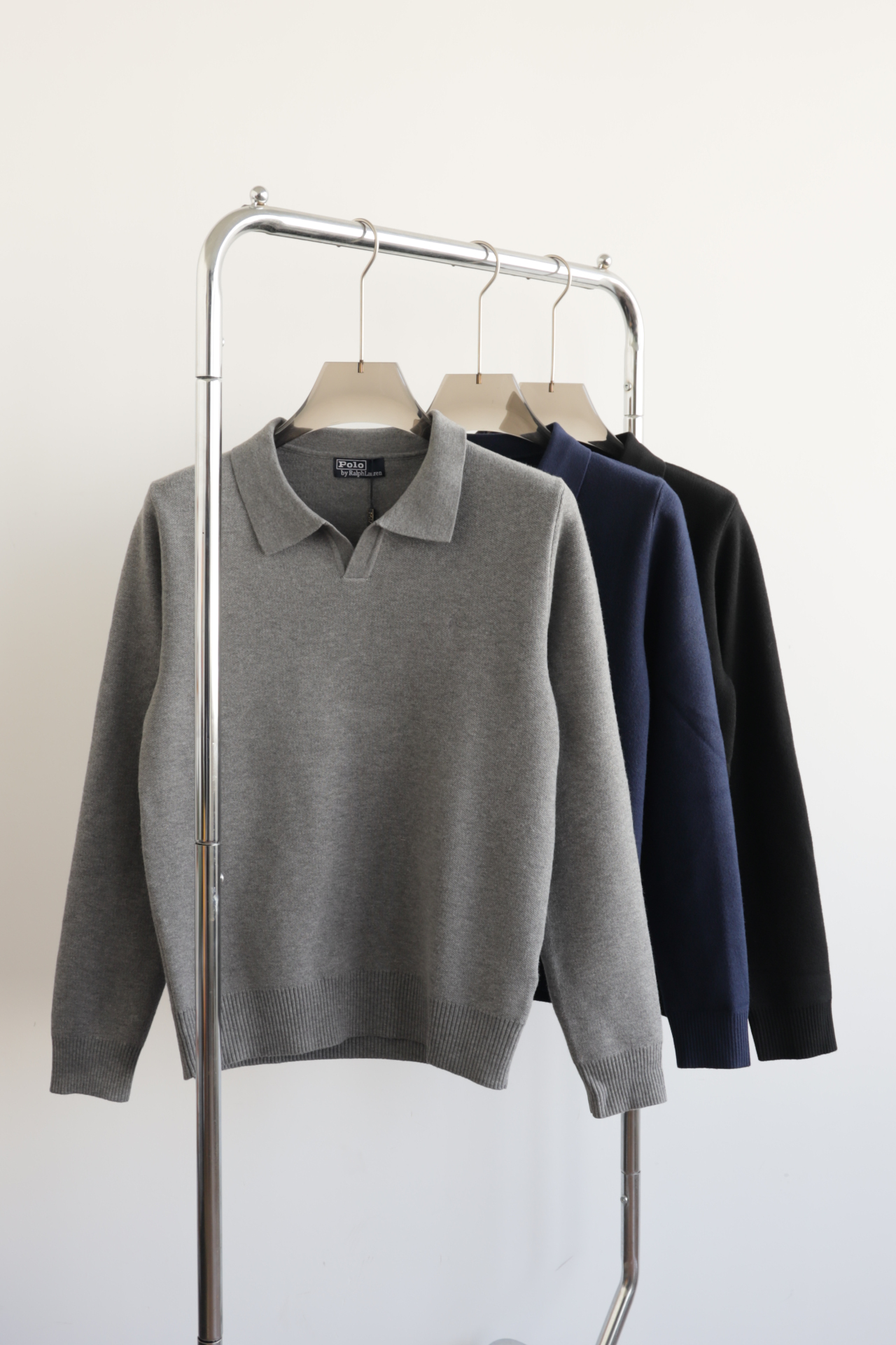 R.L 25年秋冬新款翻领V领针织毛衣