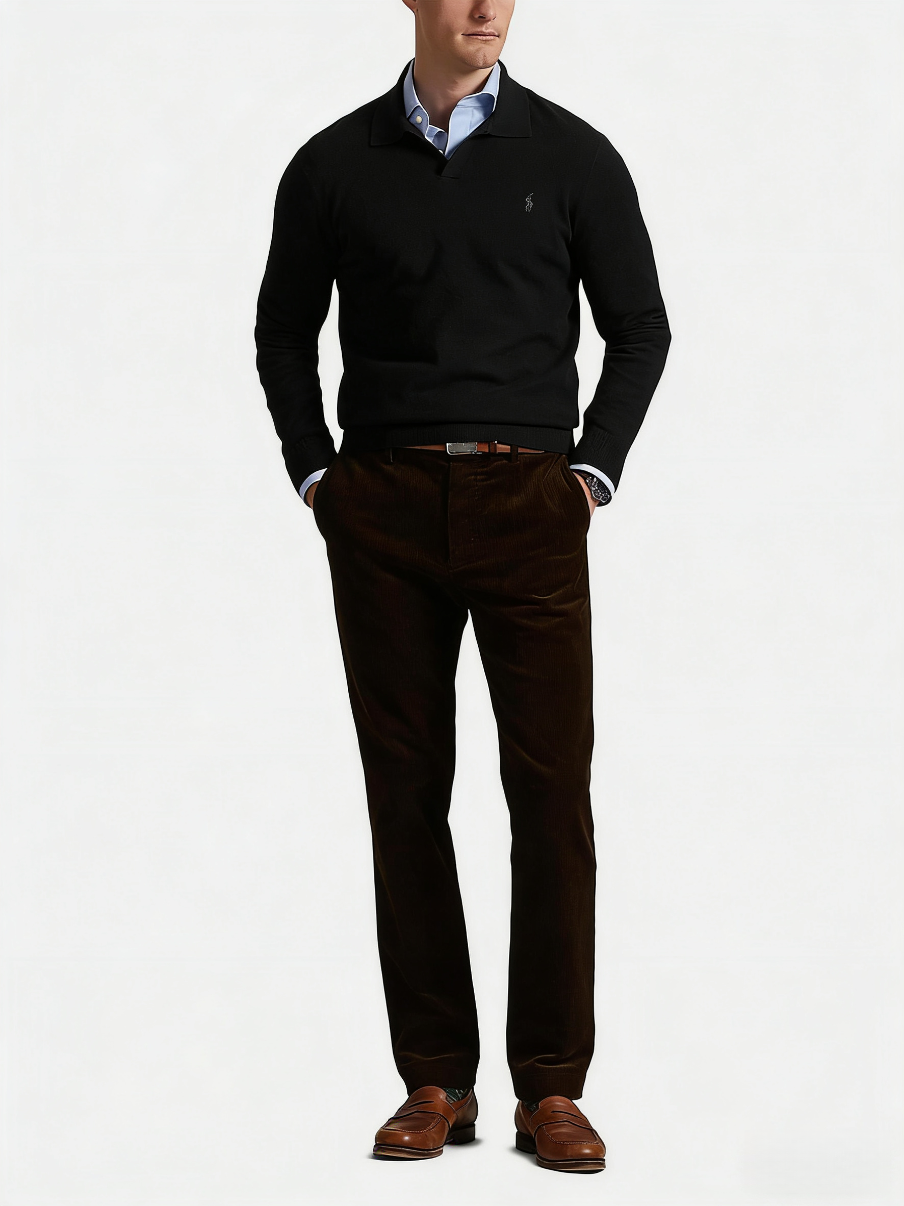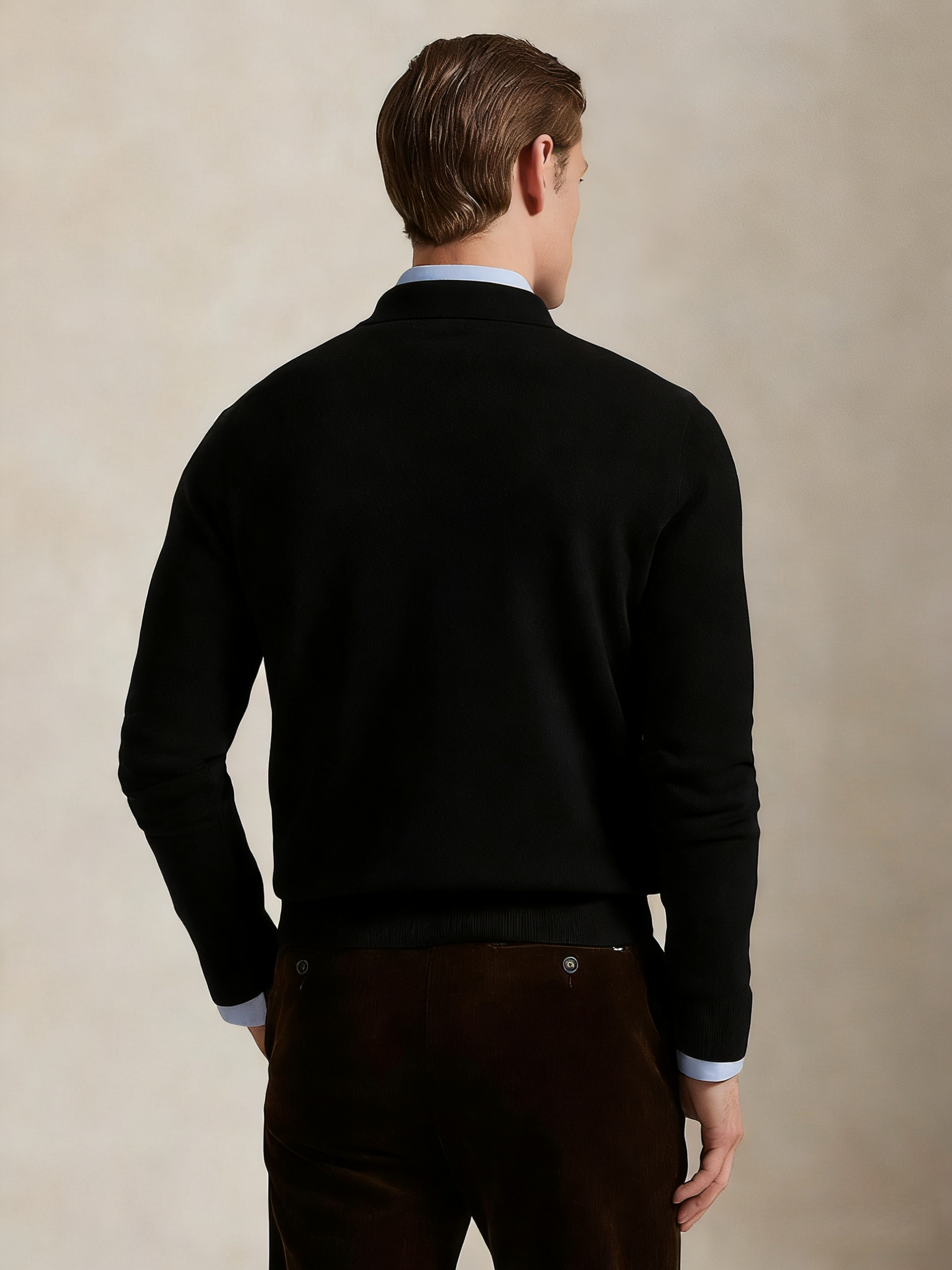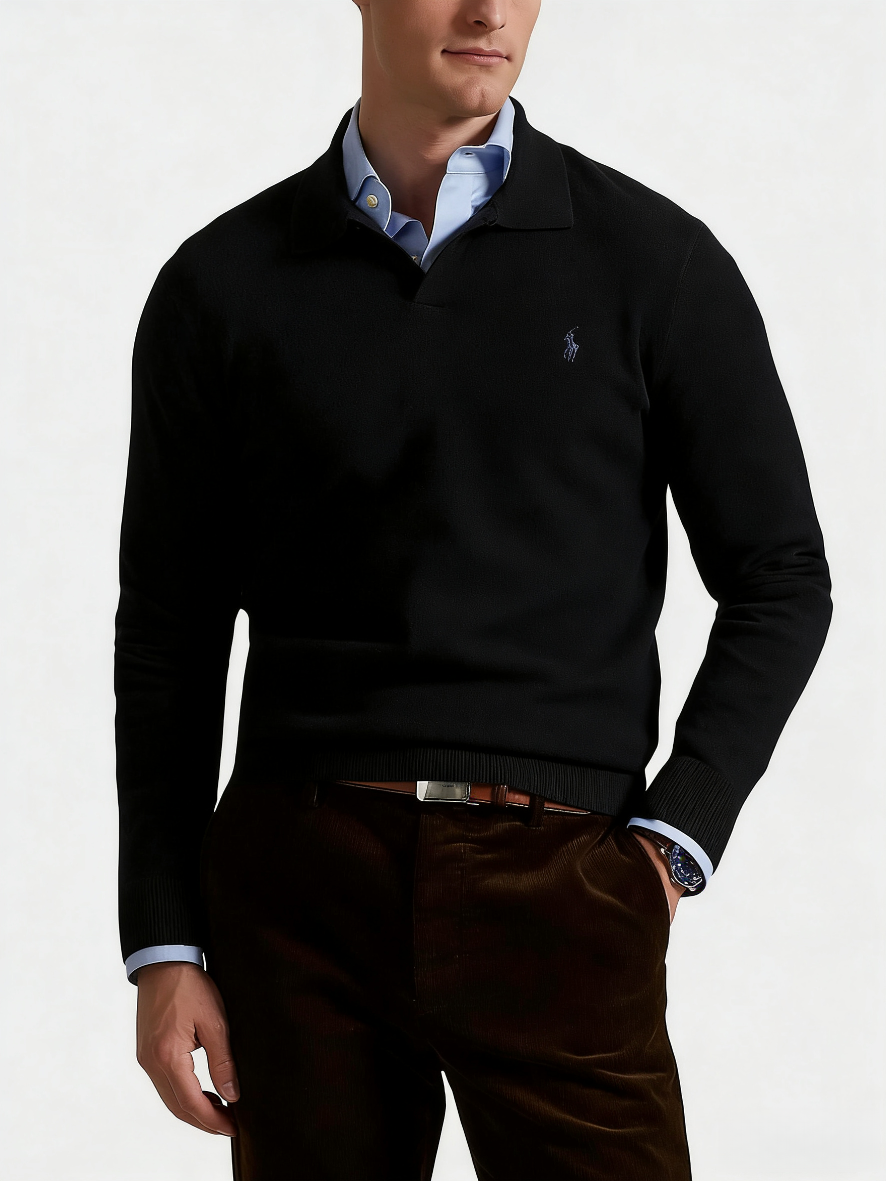 R.L 25年秋冬新款翻领V领针织毛衣