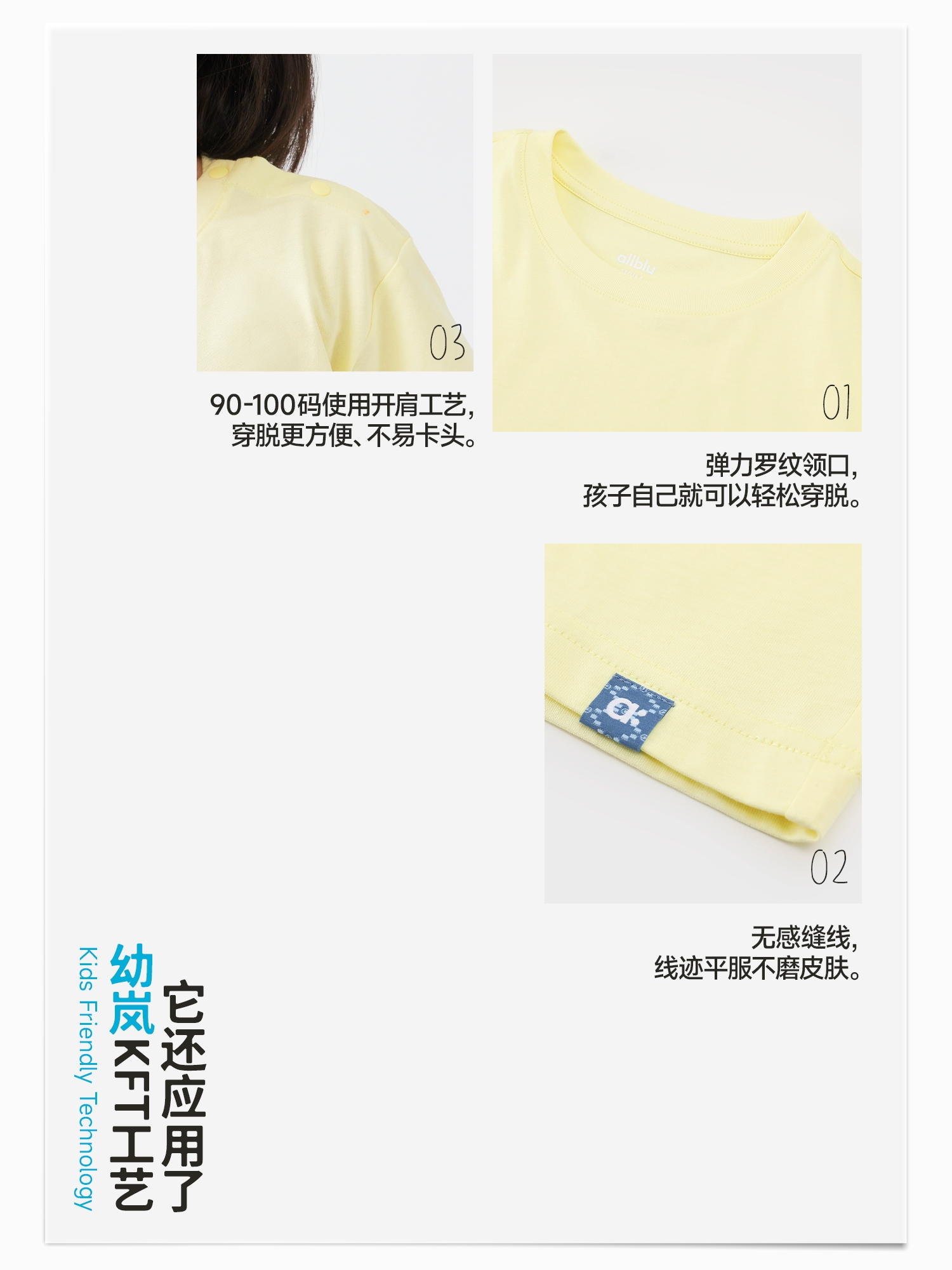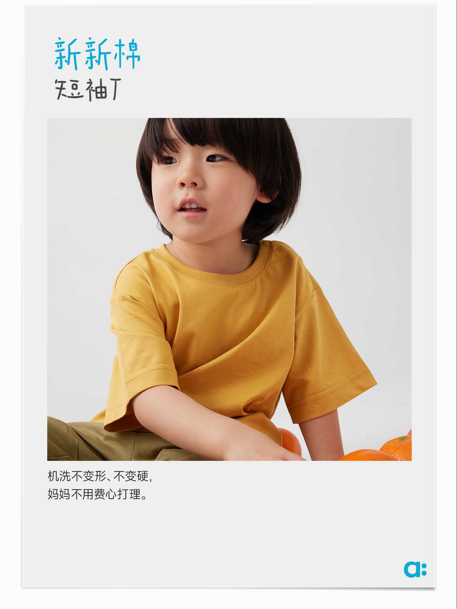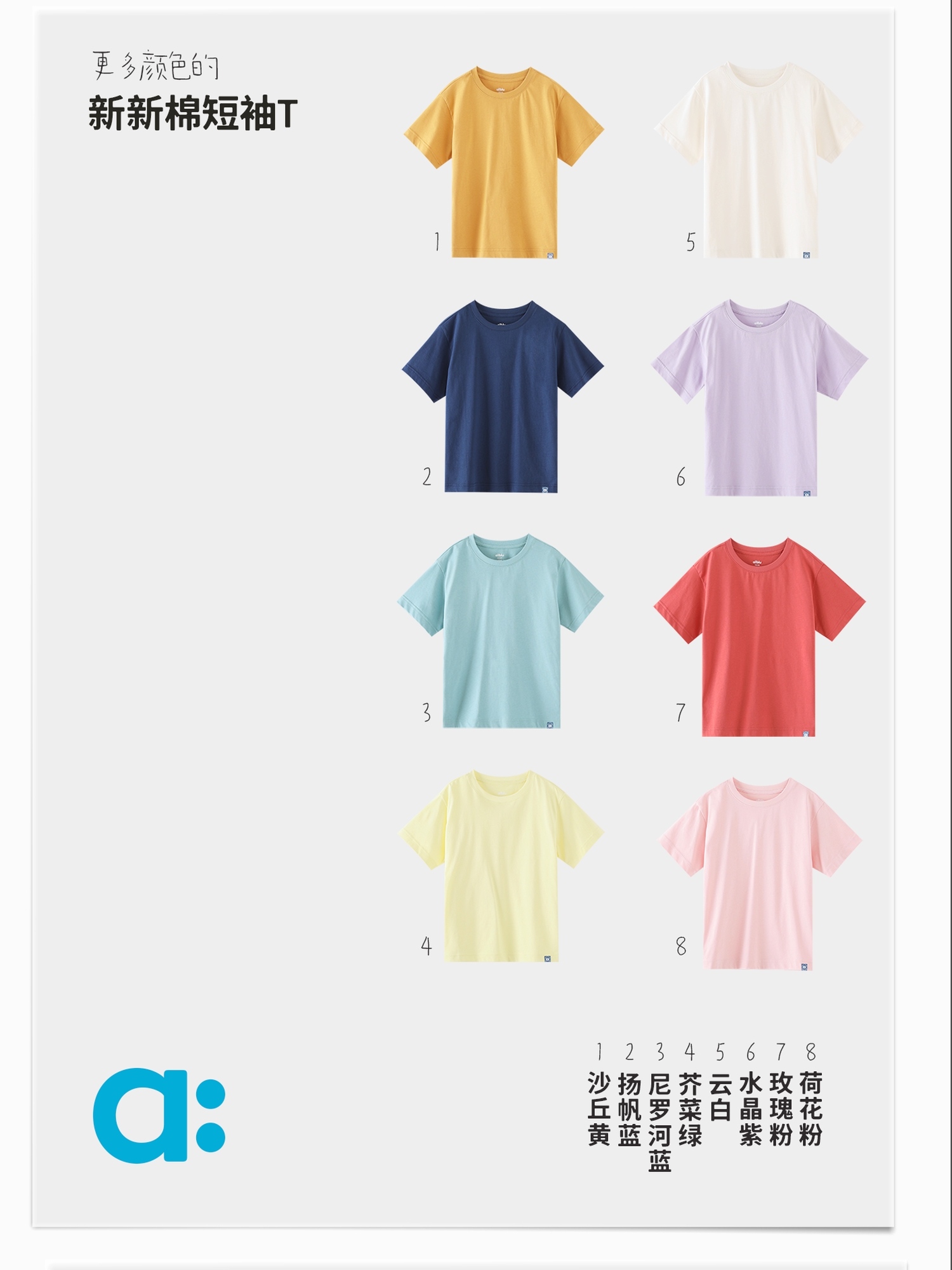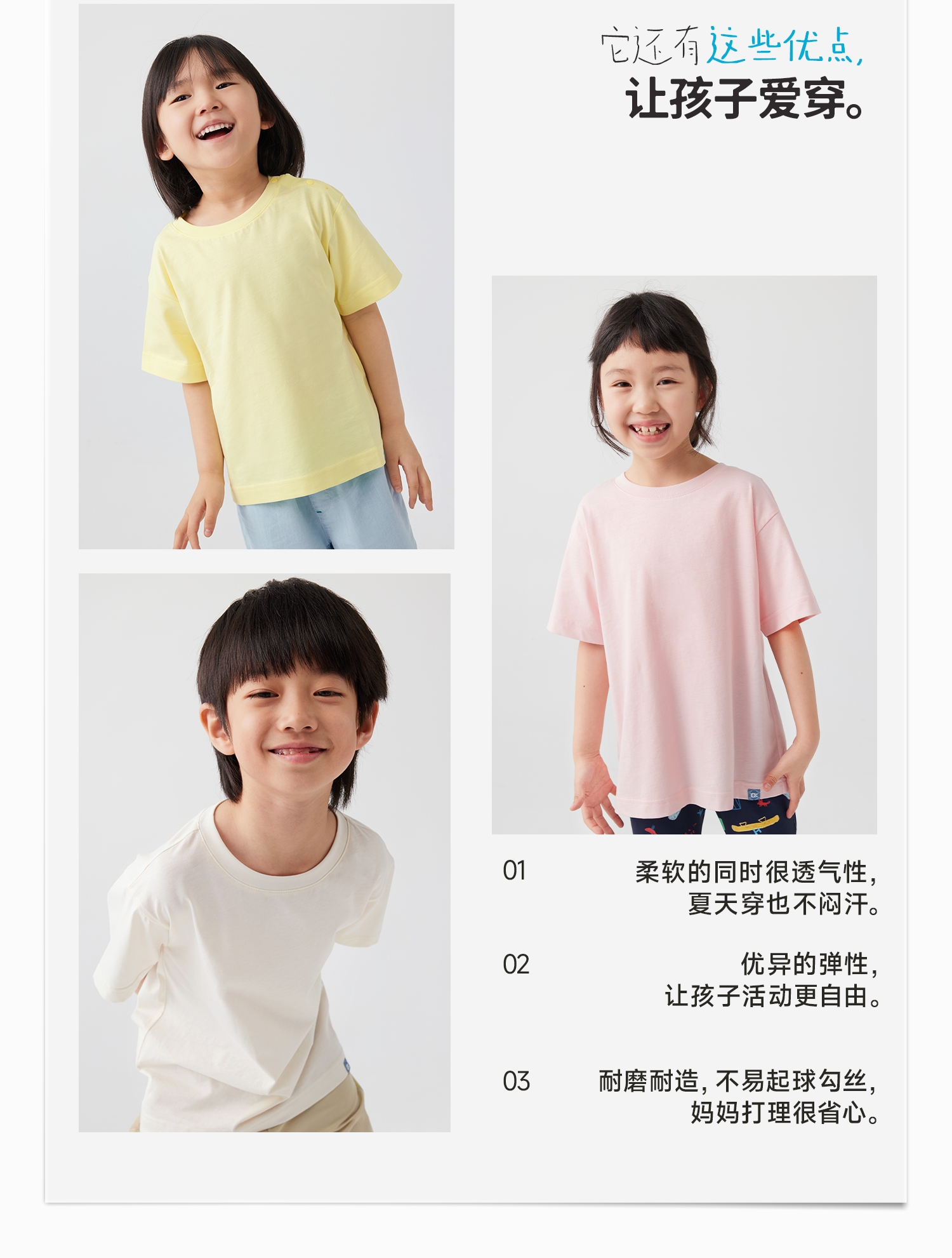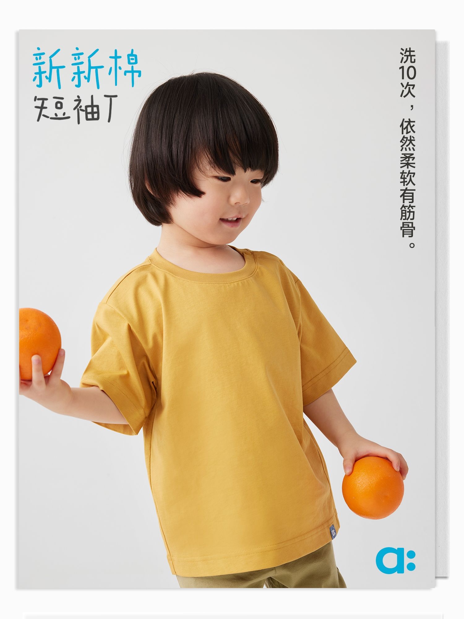 【好友特惠】幼岚「新新棉」柔软耐洗纯色短袖T恤易打理24春新款儿童T恤亲子款ZY