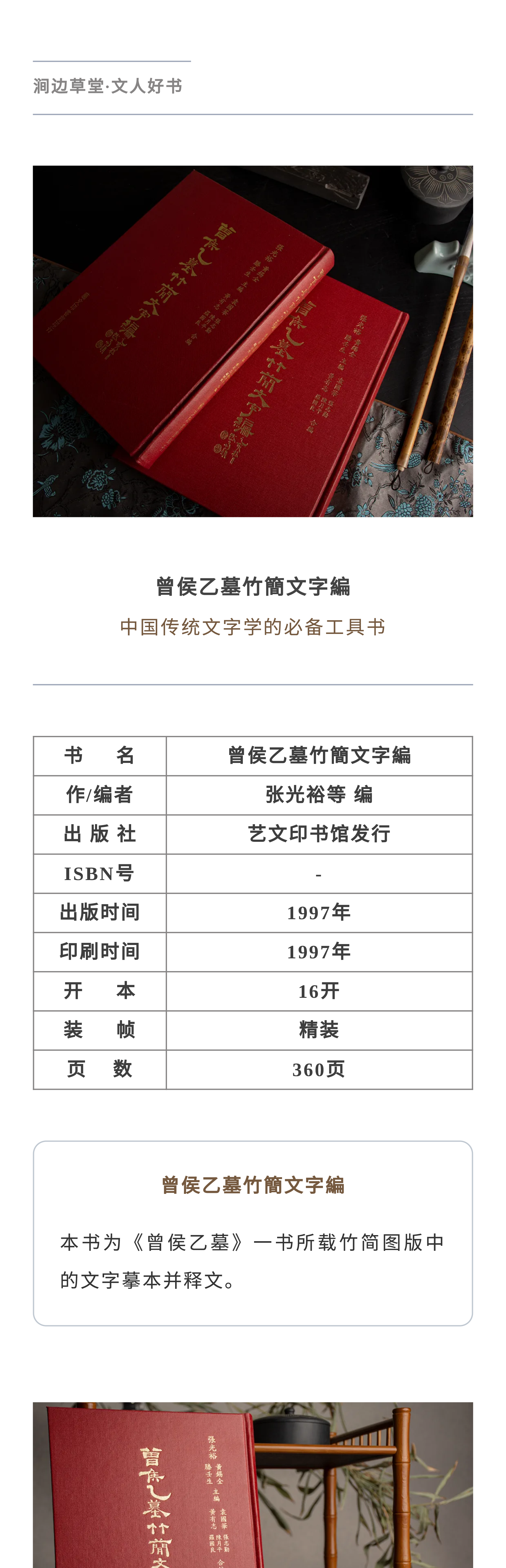 【绝版好书】《曾侯乙墓竹简文字编》16开精装360页,1997年艺文印书馆初版