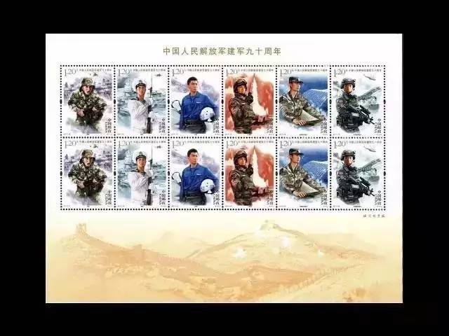 中国邮政于8月1日发行了《中国人民解放军建军90周年》纪念邮票1套6枚,小型张一枚。