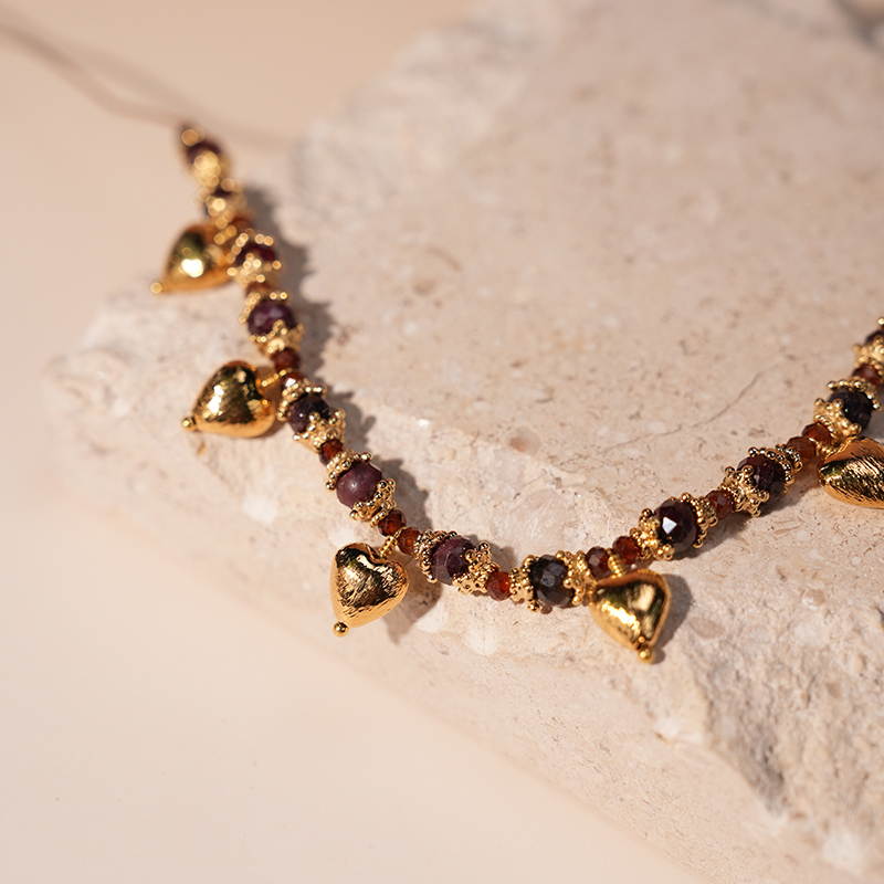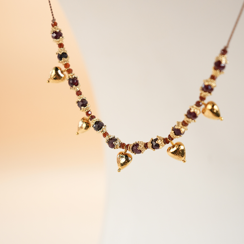 订购8周到|Tityaravy-DIL 5-石榴石 5颗爱心 吊坠 项链[法国设计师]
