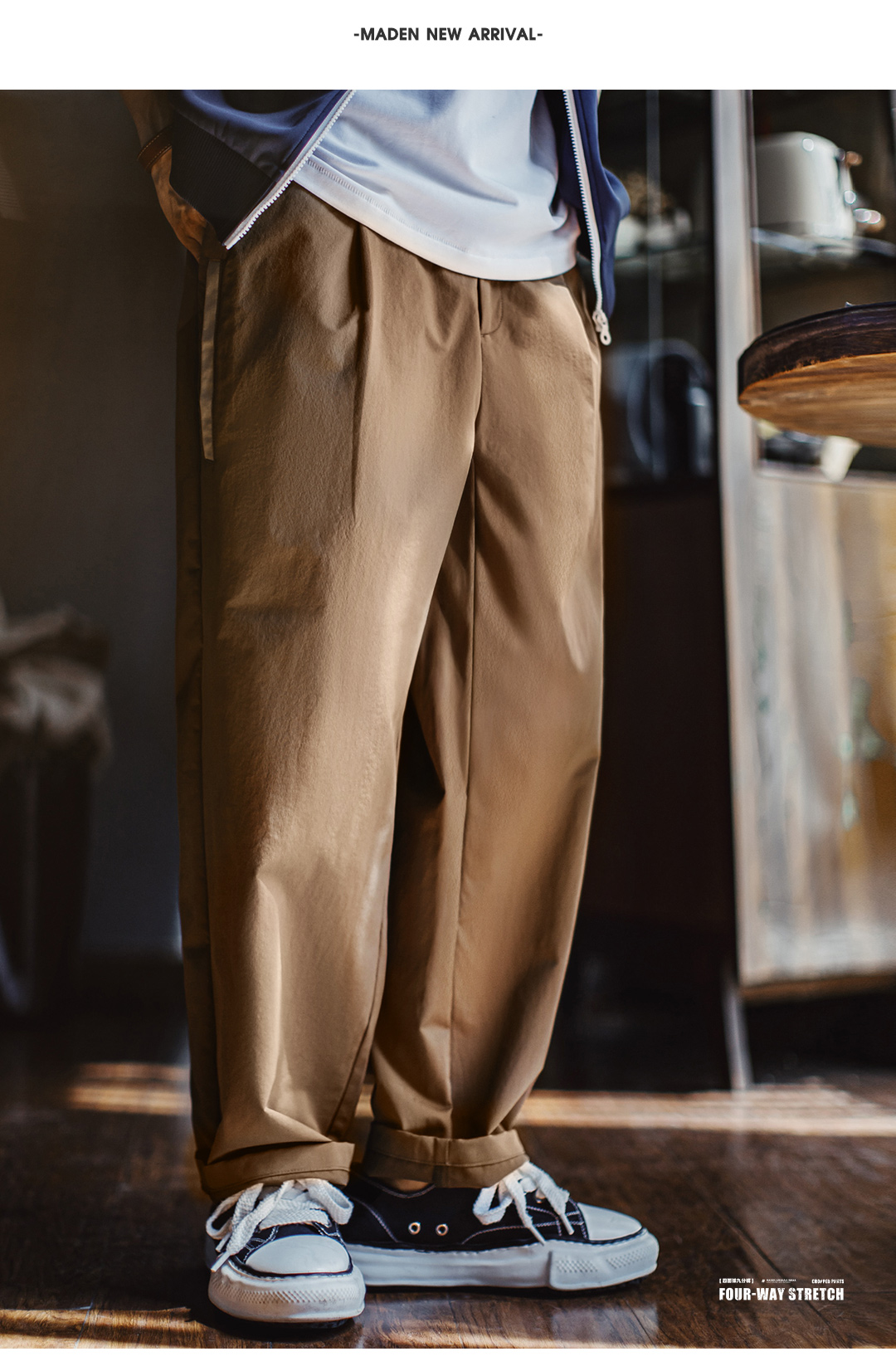 马登工装美式复古四面弹休闲裤卡其色通勤抗皱锥型薄款长裤子男秋