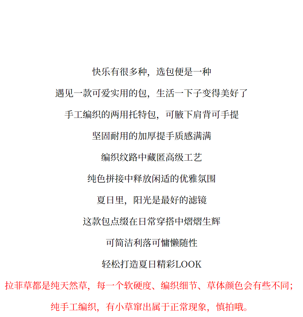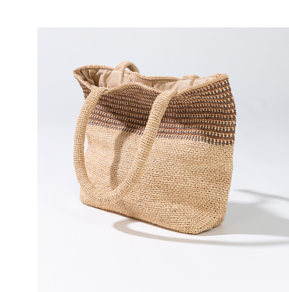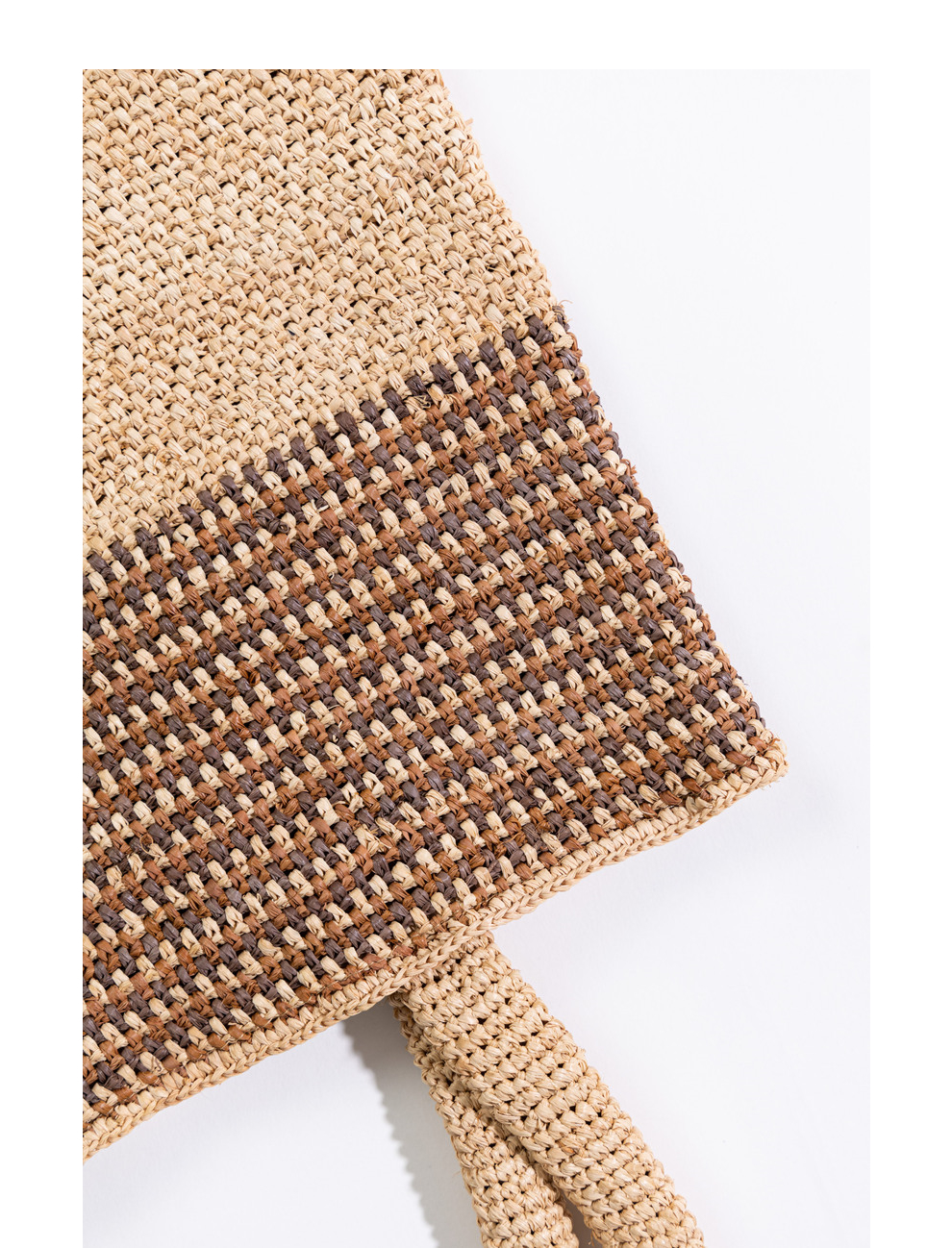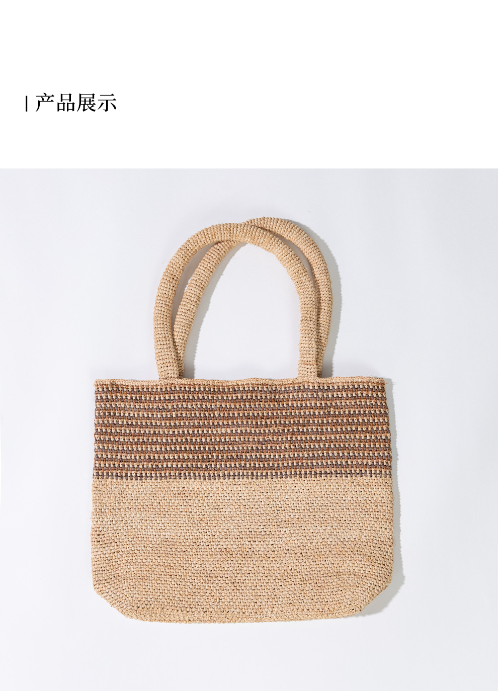 绽放JS059朵/拉菲草纯手工编织拼色肩背手提两用卡其棕色托特包