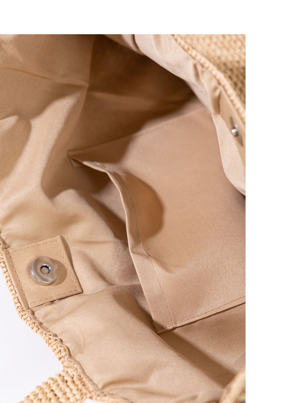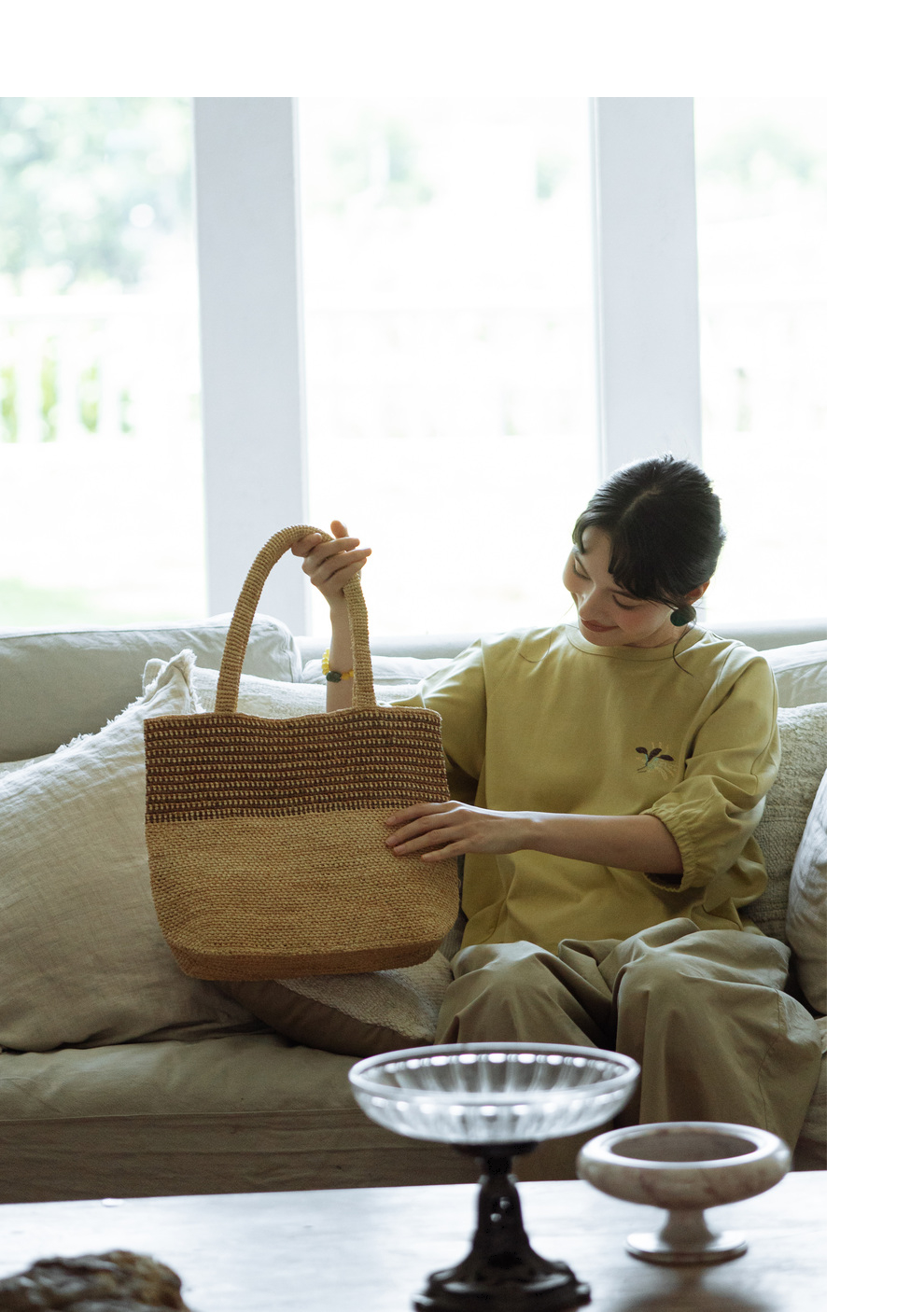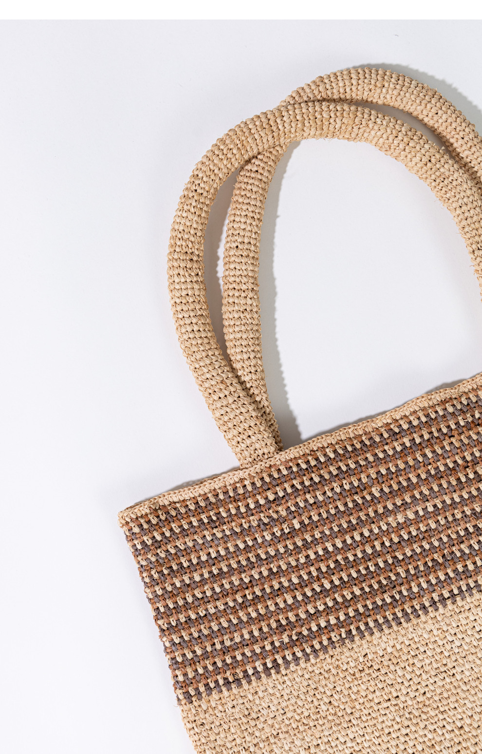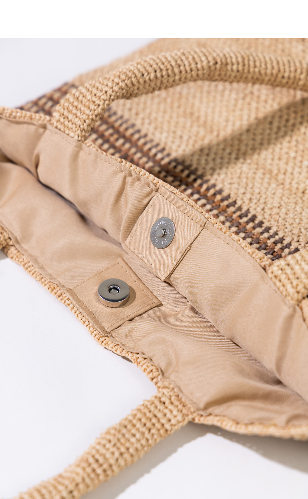 绽放JS059朵/拉菲草纯手工编织拼色肩背手提两用卡其棕色托特包