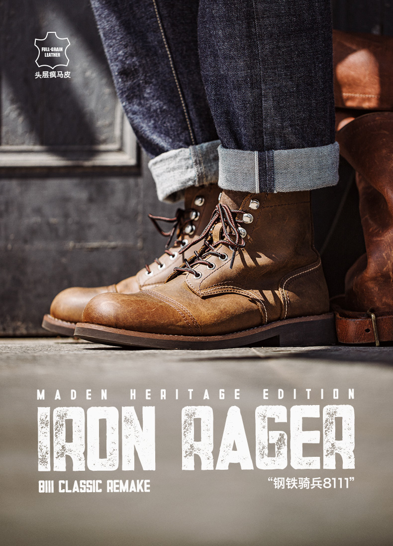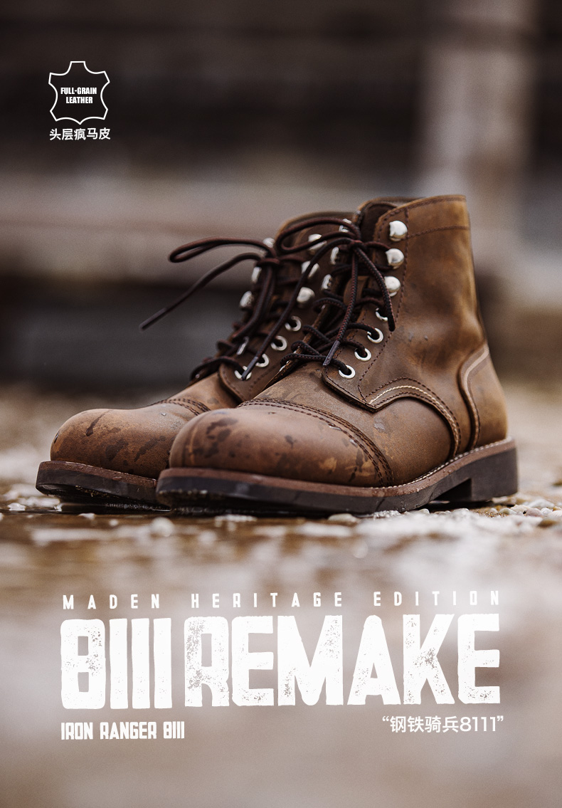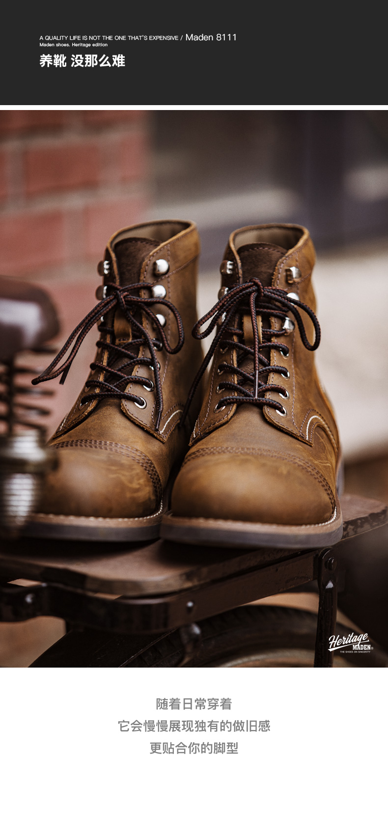 【马登男鞋】8111工装靴秋季新款男鞋真皮美式复古伞兵靴vintage机车靴马丁靴