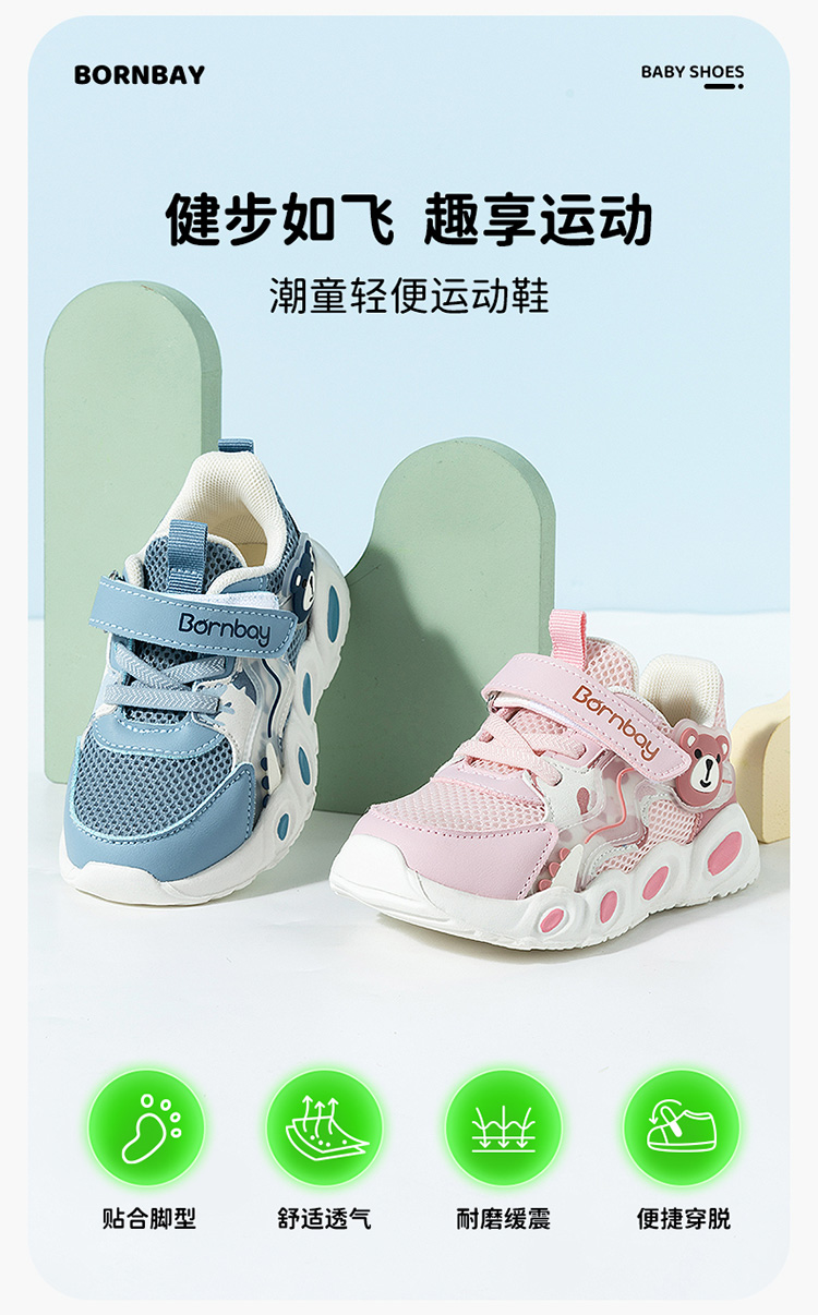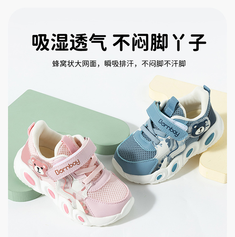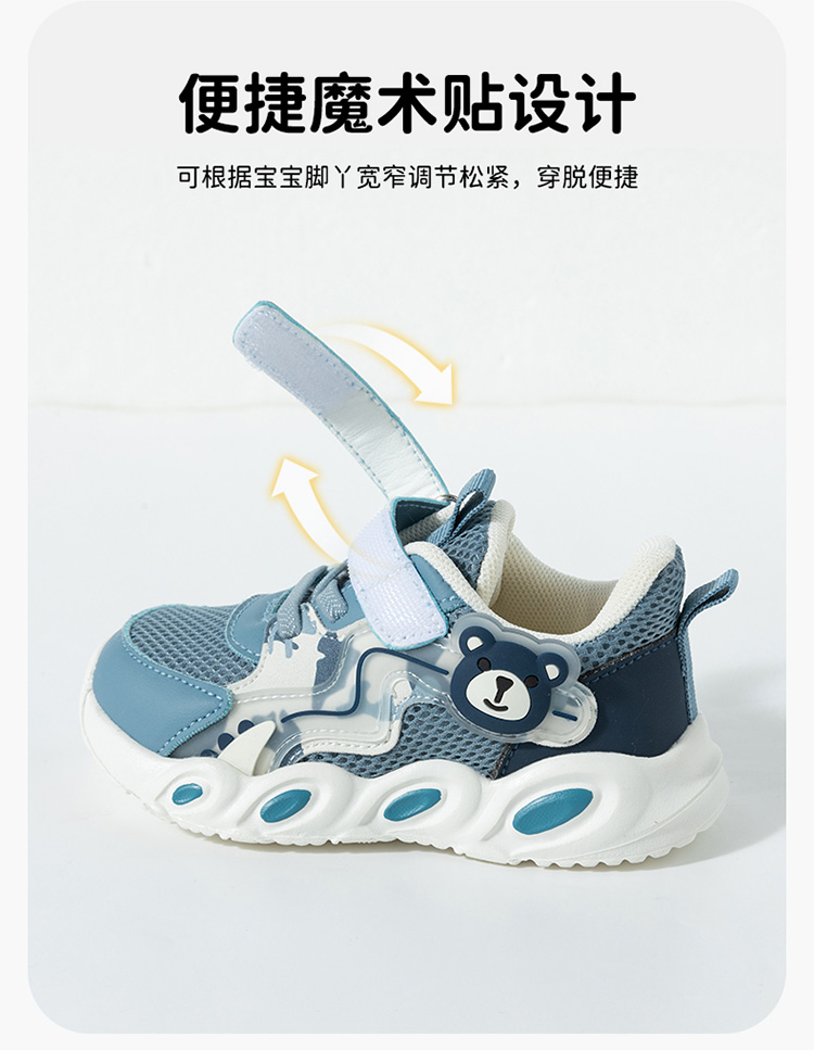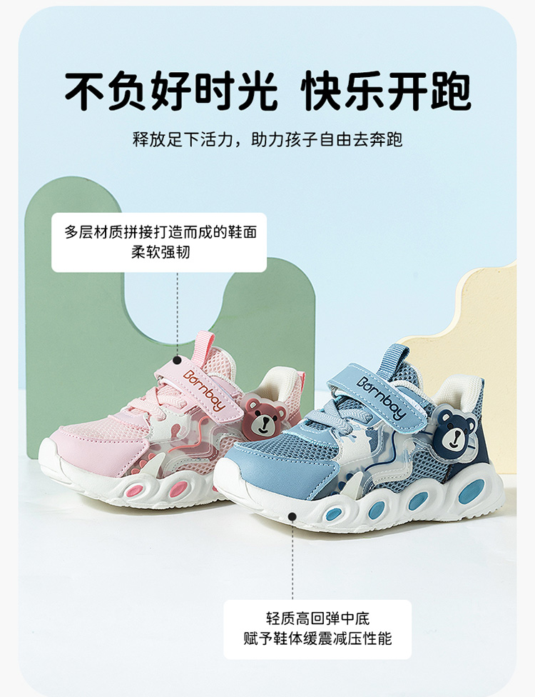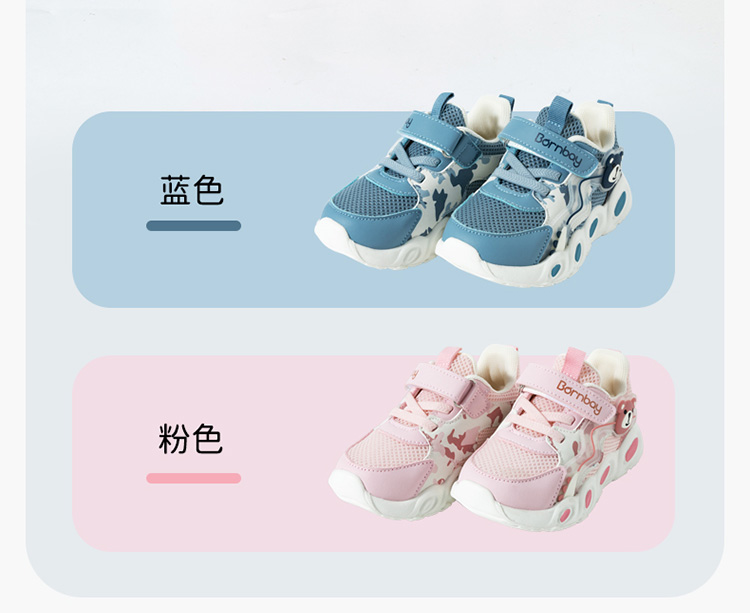 贝贝怡25春秋新款男女童网眼透气运动鞋软底舒适休闲鞋魔术贴跑步鞋ZB1EX019
