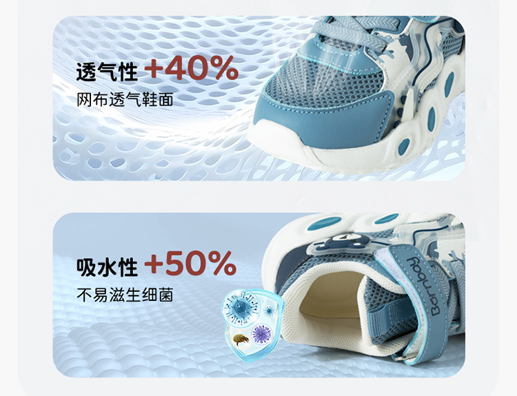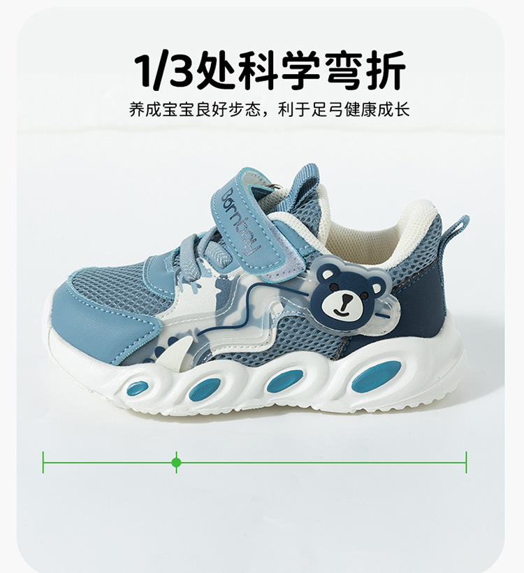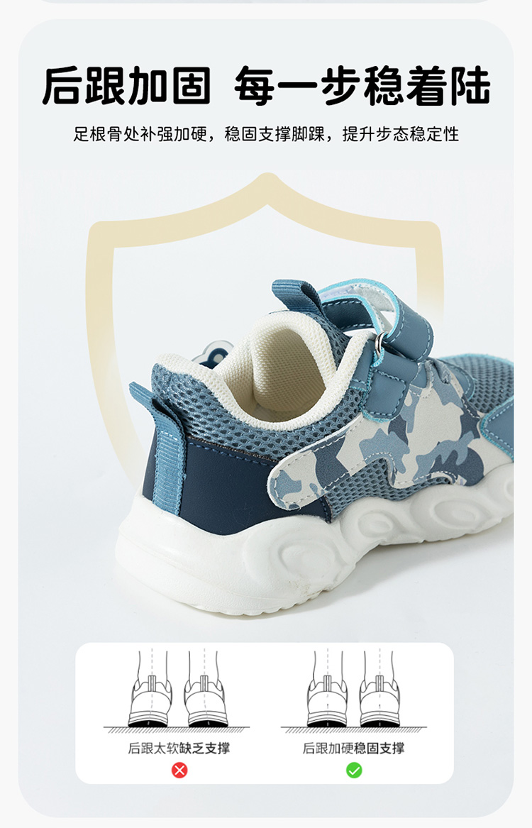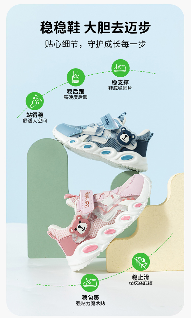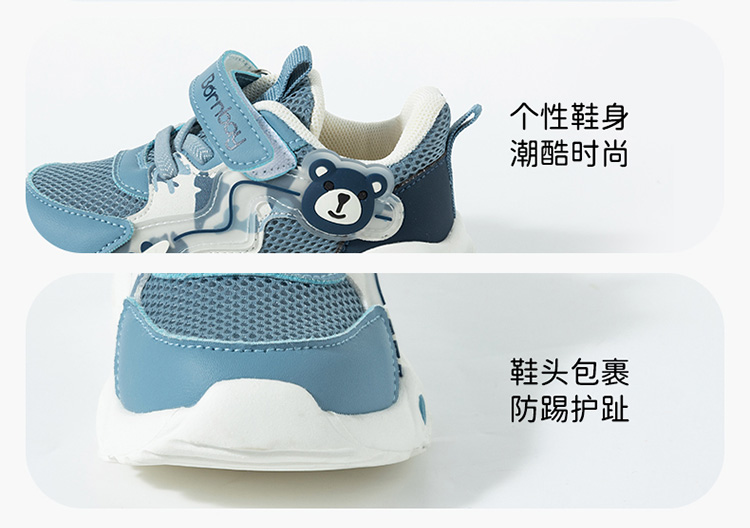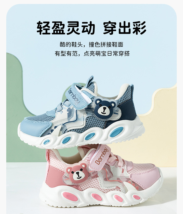 贝贝怡25春秋新款男女童网眼透气运动鞋软底舒适休闲鞋魔术贴跑步鞋ZB1EX019
