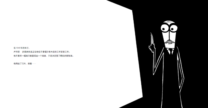 超现实、流畅的图画主要以黑白两色为主,并以艺术家或其作品的代表色进行极精简的点缀。