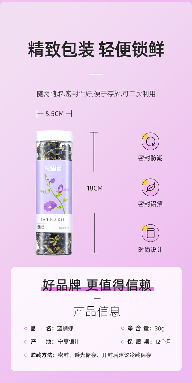【冬季滋补】【杞里香蓝蝴蝶花茶蝶豆花30g*1罐】蓝蝴蝶干 新鲜采摘 自然晾晒干燥无杂 原生原色