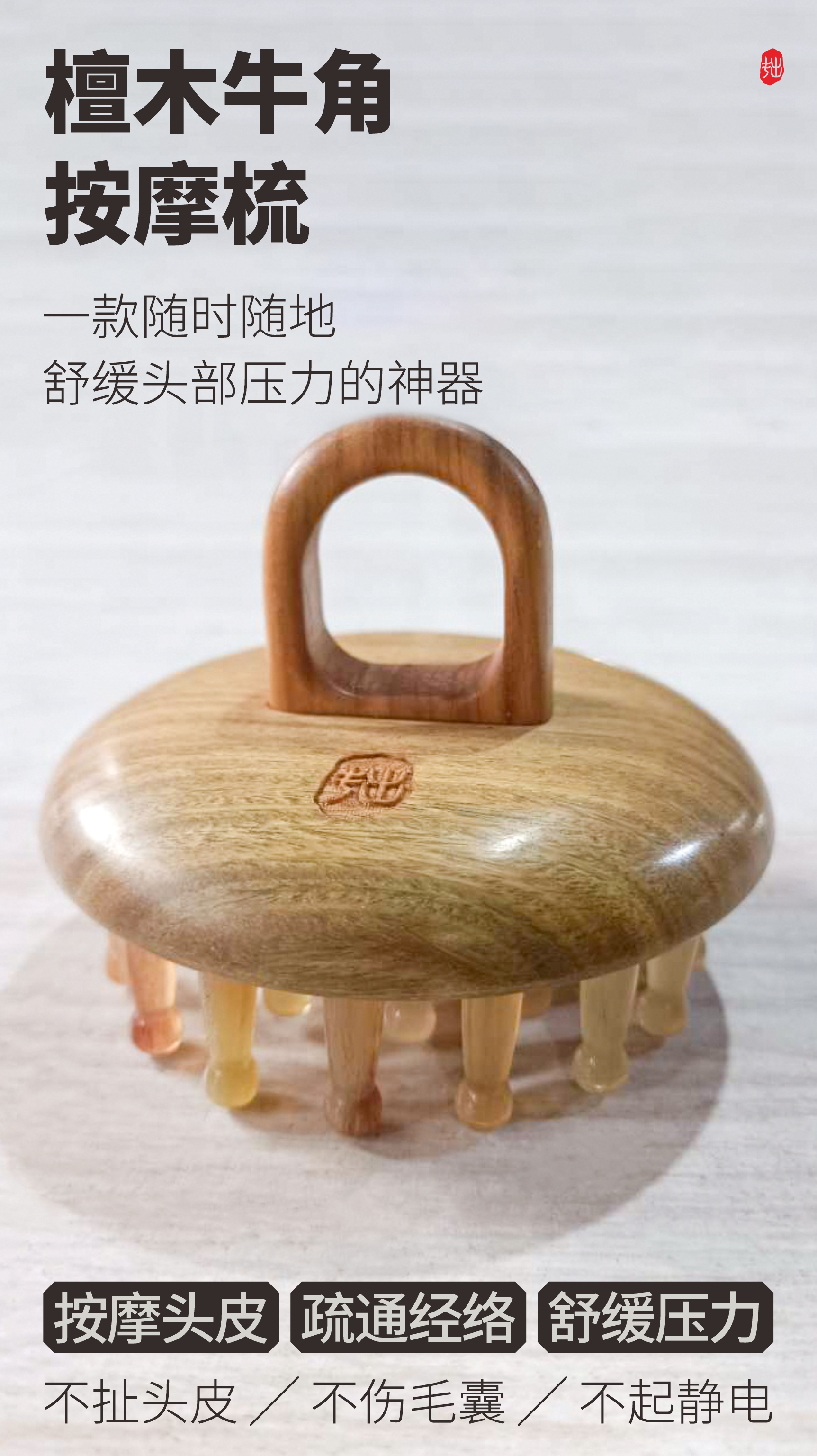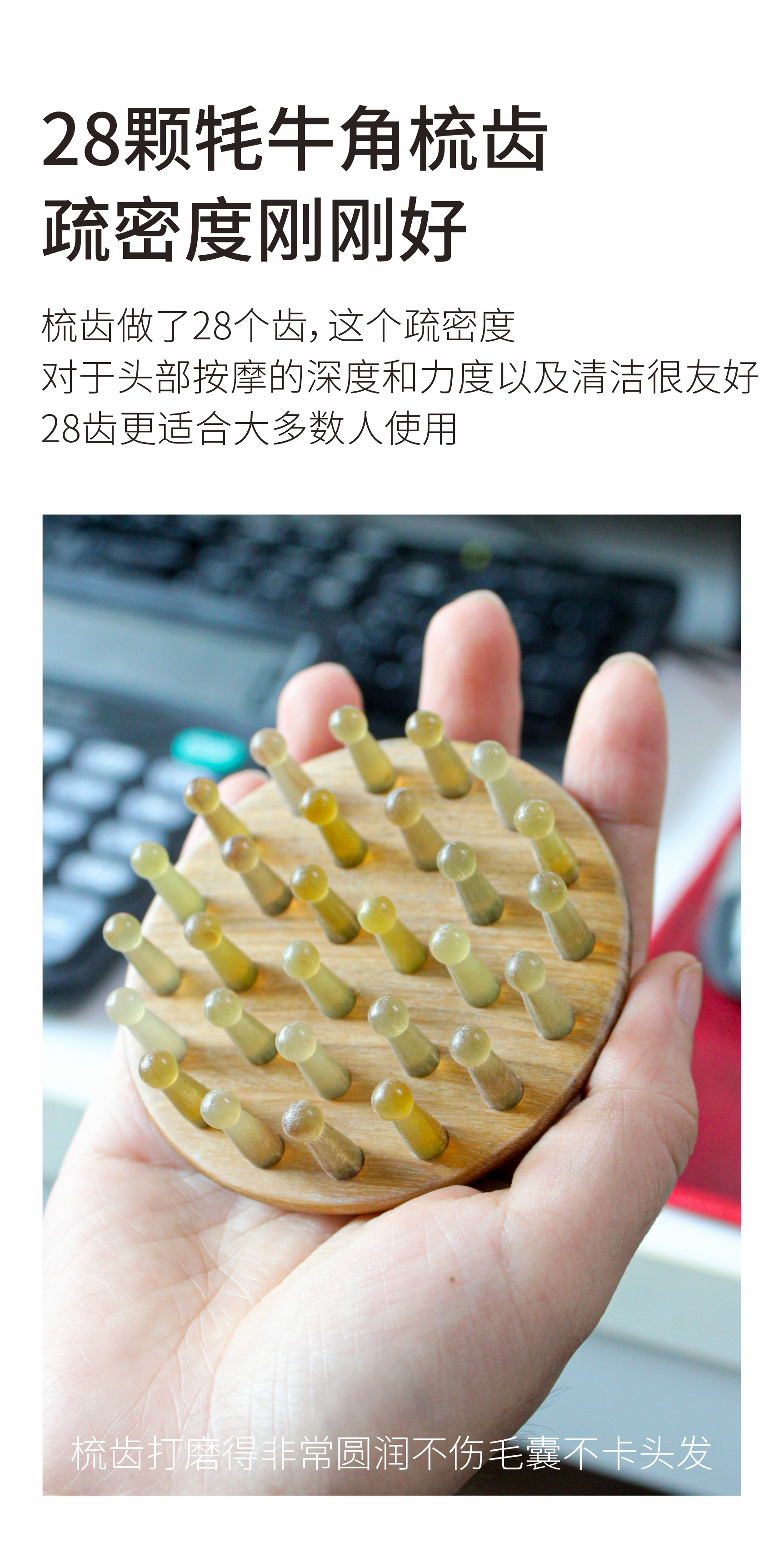 檀木牦牛角按摩梳|便携舒缓经络