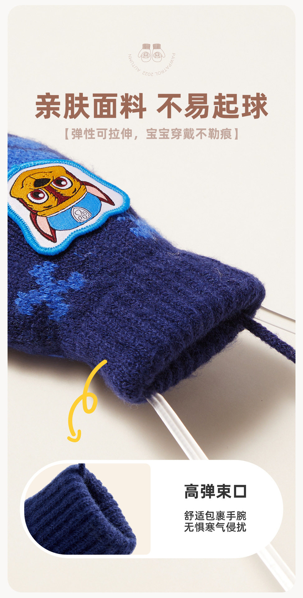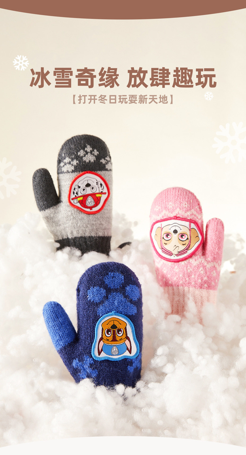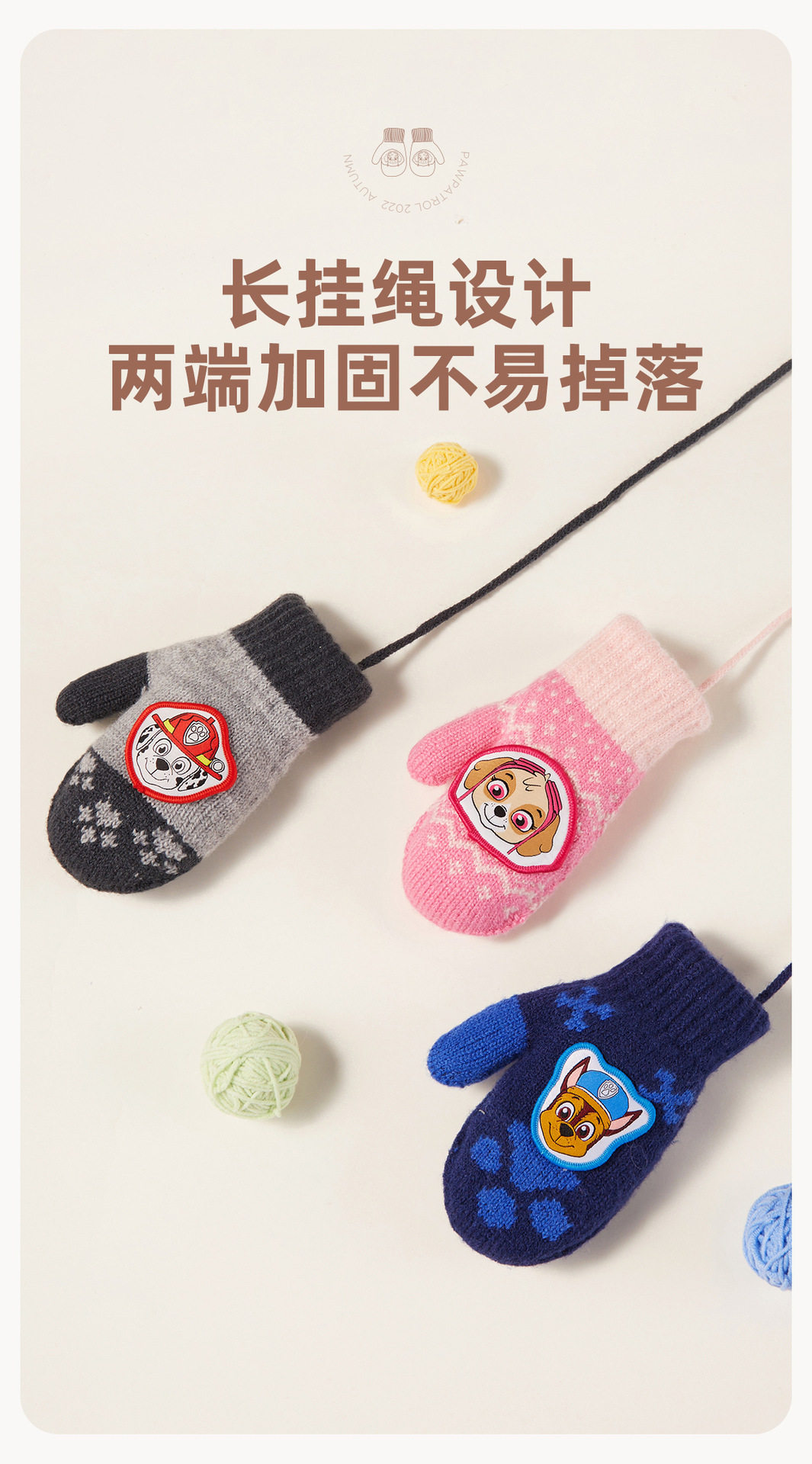 现货批发汪汪队儿童手套连指保暖可爱带挂绳手套男童女宝宝加绒厚