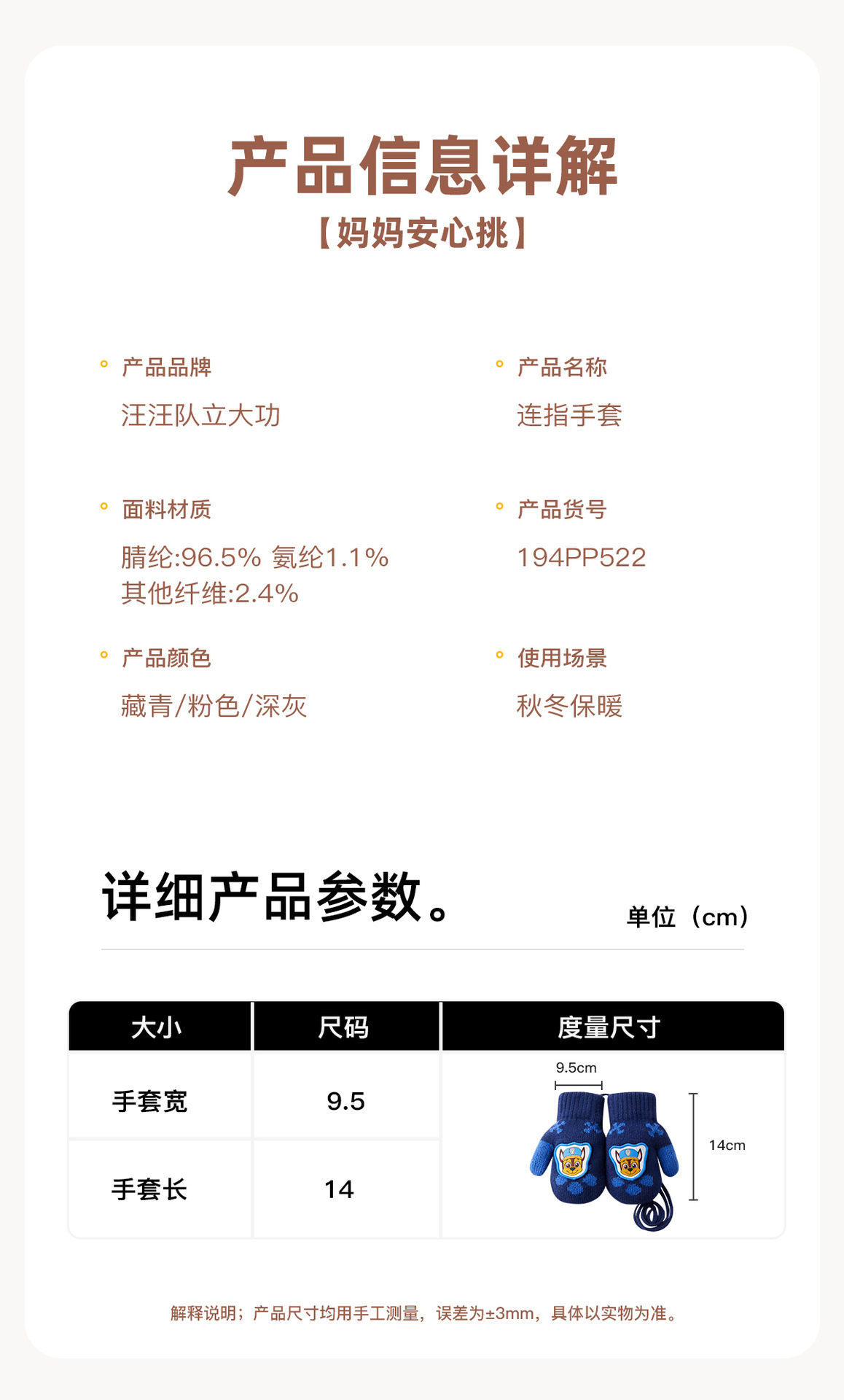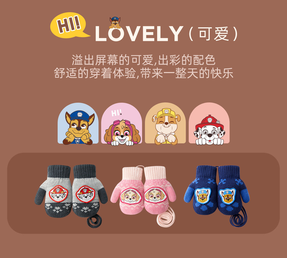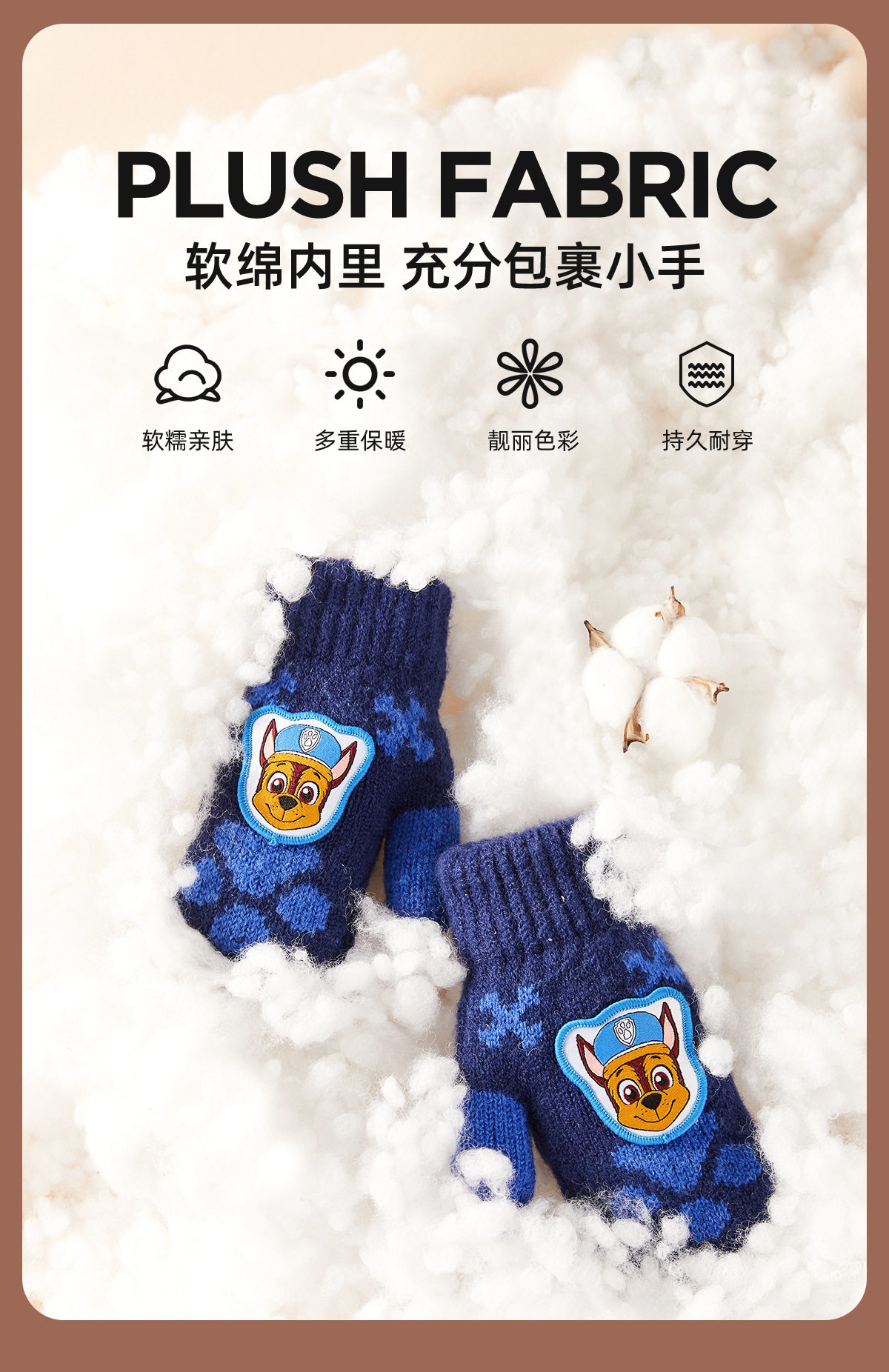 现货批发汪汪队儿童手套连指保暖可爱带挂绳手套男童女宝宝加绒厚