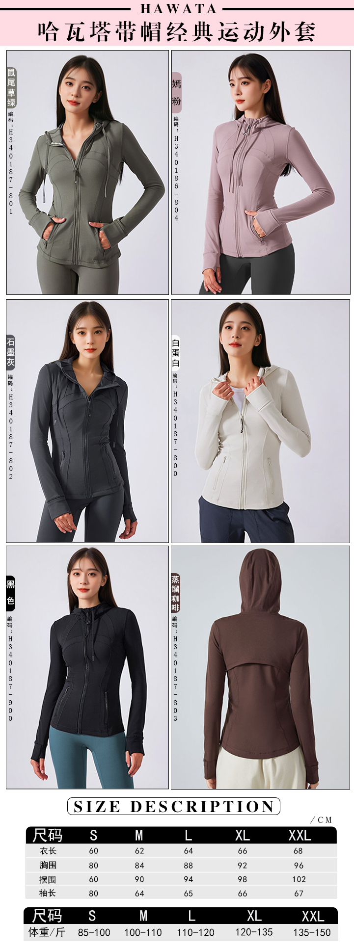 【买一赠一】HaWaTa瑜伽连帽紧身外套H340187 商品图11