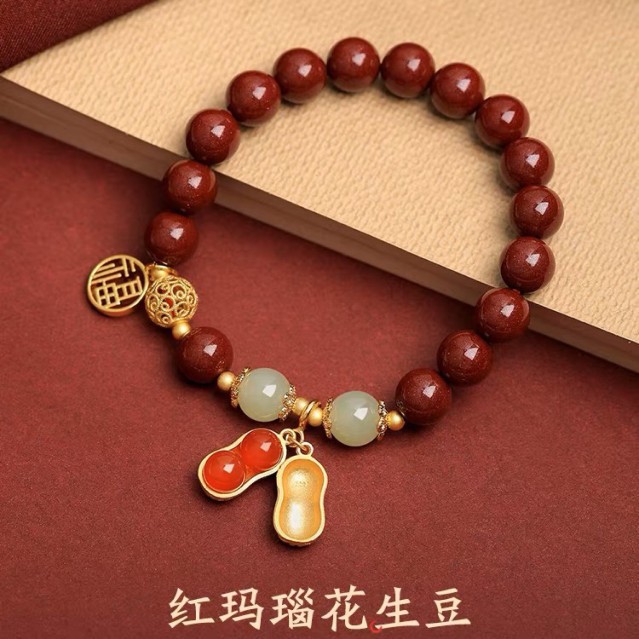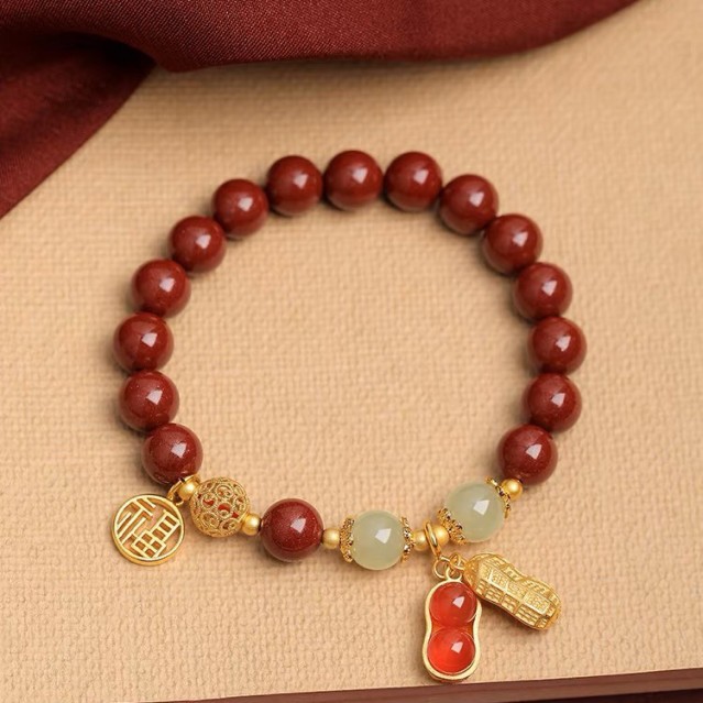 【吉祥喜果❗️好事花生仿朱砂手链】颗颗分明,珠体圆润饱满,呈现紫红色泽,色彩靓丽显肤白,纯银轻奢小众兔年好运珠手串生日礼物QQ