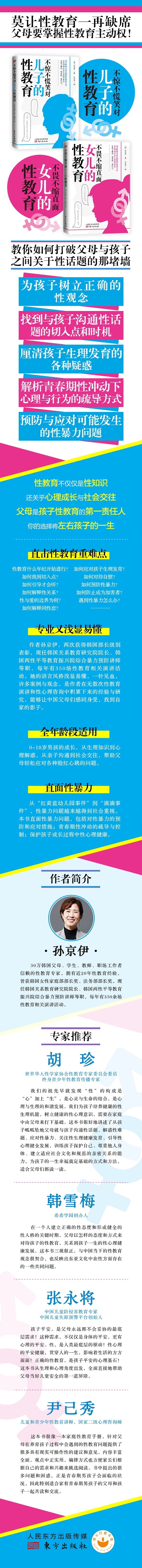 这本书以“性自主决定权”和“性平等意识”为核心原则,为父母解读青春期之前和青春期阶段,与孩子沟通性话题、展开性教育的方法和理念。书中还阐述了性暴力问题及其预防和应对措施,直击社会热点。这本书还针对女孩常见的性话题和青春期困惑做了详细解答,供父母们解惑与参考。