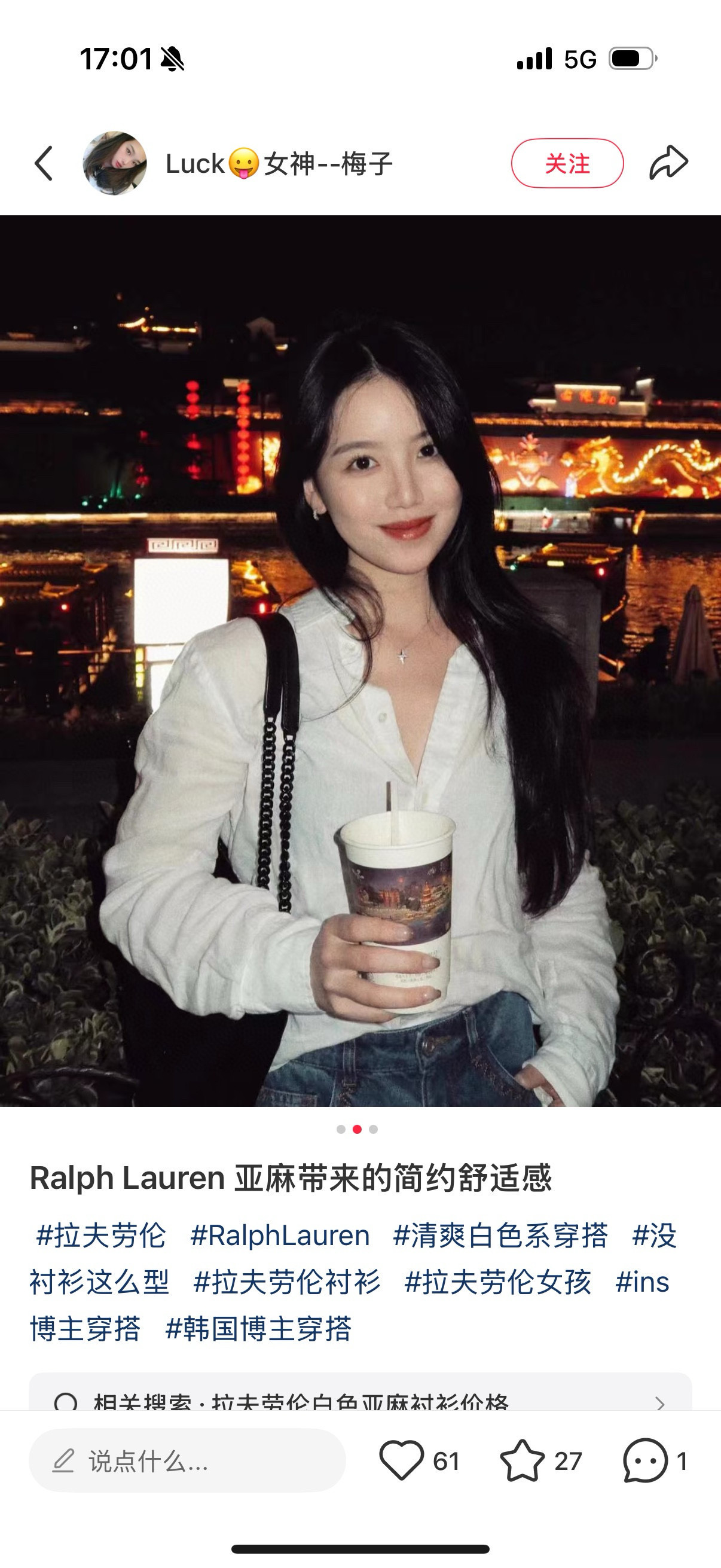 不管任何场合,它都是你最后的底气,上身是很轻的 风一吹会有一点呼吸感。
