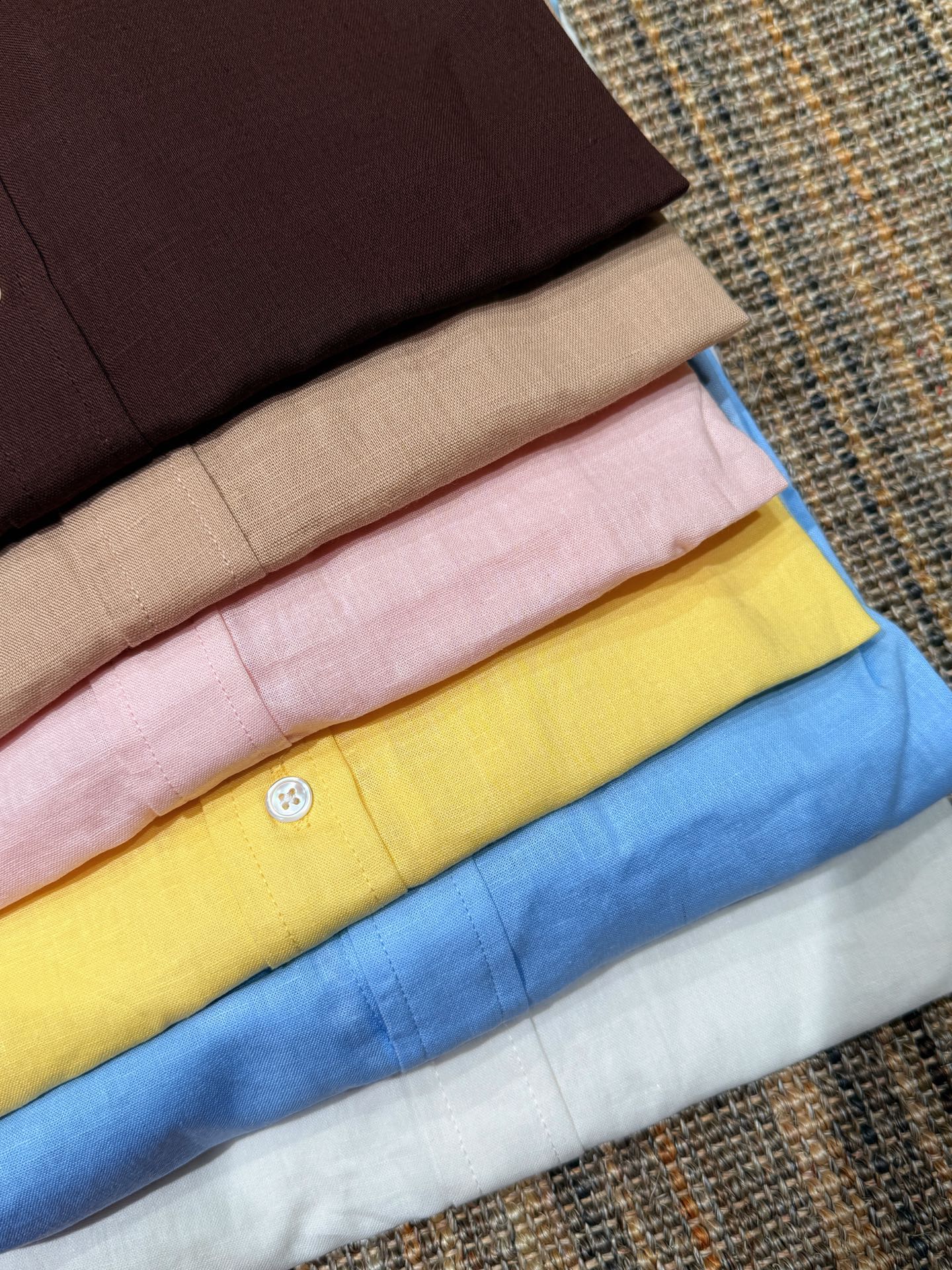 买不到的26年新色 衬衫!!!最近真的被问疯了,因为没货啊 而且全系涨价 今年的原材料很难搞,必须依靠进口就很被动 尝试过国内的亚麻但是完全不一样的味道 所以贵有贵的道理 好像除了贵其它的都无可挑剔,衬衫搭配亚麻五分裤的时候就会显得比例特别好,每个颜色都是一眼可见的高级 抓住机会囤起来吧