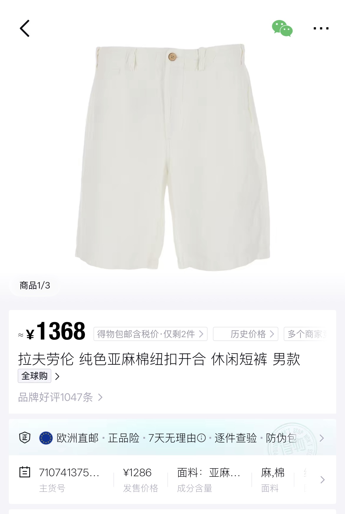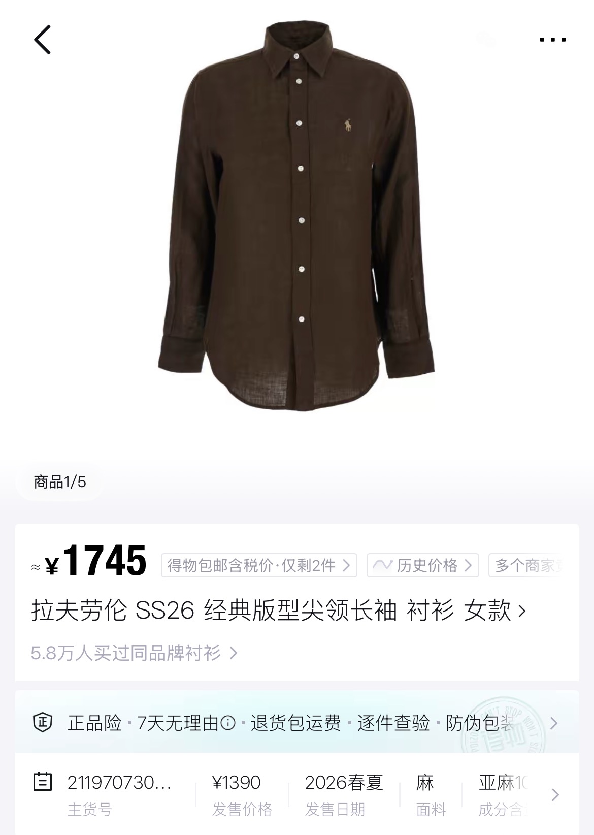 原𝐑𝐚𝐥𝐩𝐡 𝐥𝐚𝐮𝐫𝐞𝐧全亚麻衬衫➕五分裤‼️6年最新配色