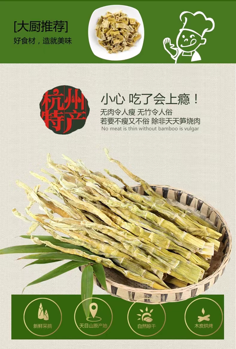 【新货!临安天目山野笋干】选用天目山鲜笋为原料, 采用手工搓揉等传统工艺精心制作,笋干色泽自然,口感不错。净含量250克/袋,江浙沪皖顺丰包邮~