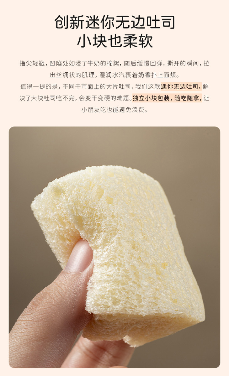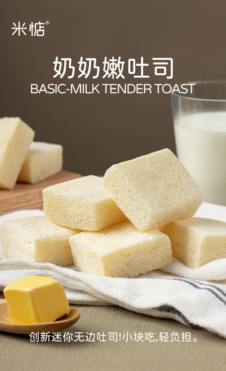 米惦的奶奶小馒头,之前上了就很受欢迎哦,这次是又新出了奶奶嫩吐司!是很可爱的Mini无边小方块,裹着浓郁的奶香,软乎乎,特别适合小朋友,涂上酱也不会吃到脸上了!