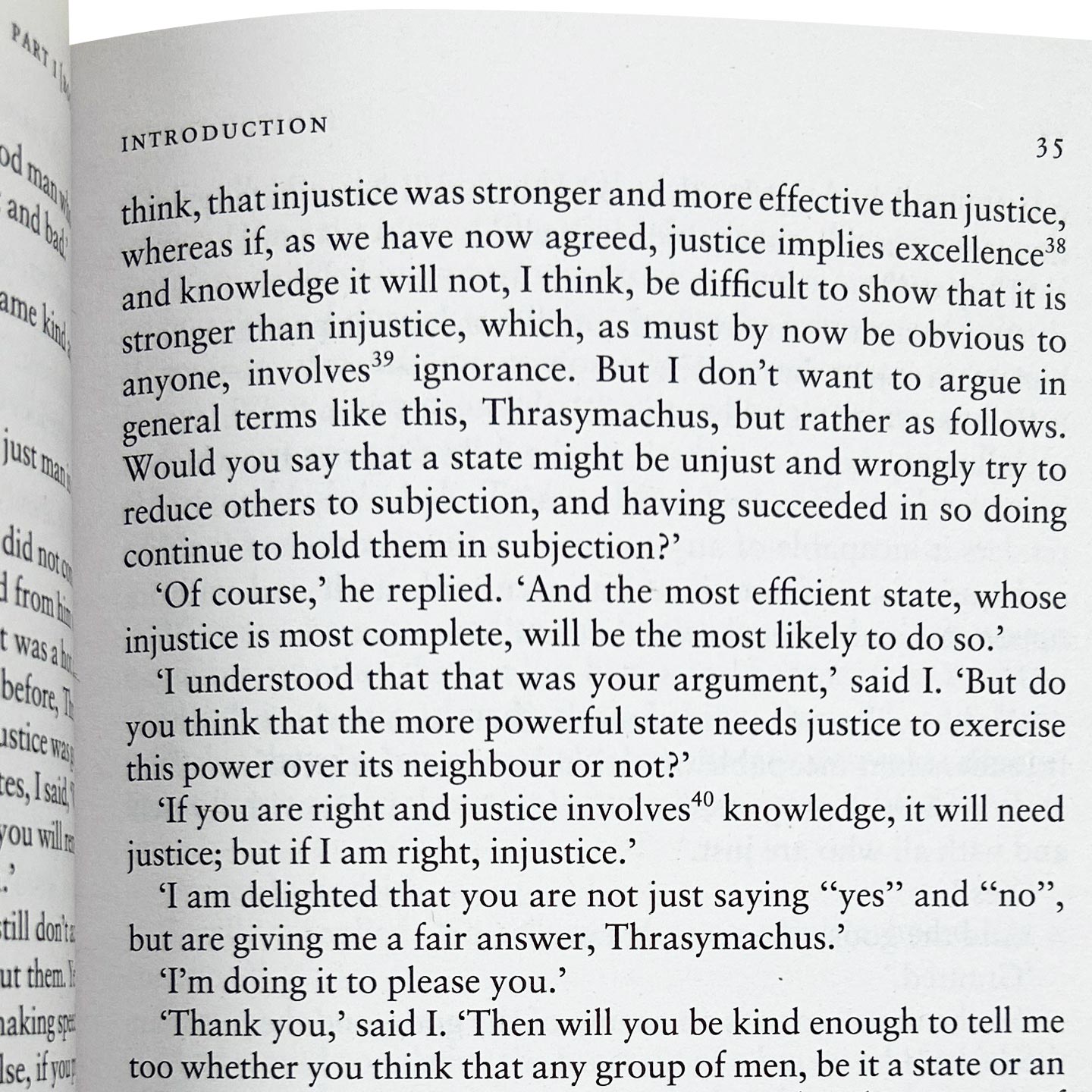 I went down yesterday to the Piraeus with Glaucon the son of Ariston, that I might offer up my prayers to the goddess (Bendis, the Thracian Artemis.); and also because I wanted to see in what manner they would celebrate the festival, which was a new thing. I was delighted with the procession of the Inhabitants; but that of the Thracians was equally, If not more, beautiful. When we had finished our prayers and viewed the spectacle, we turned in the direction of the city and at that instant Polemarchus the son of Cephalus chanced to catch sight of us from a distance as we were starting on our way home, and told his servant to run and bid us wait for him. The servant took hold of me by the cloak behind, and said: Polemarchus desires you to wait.