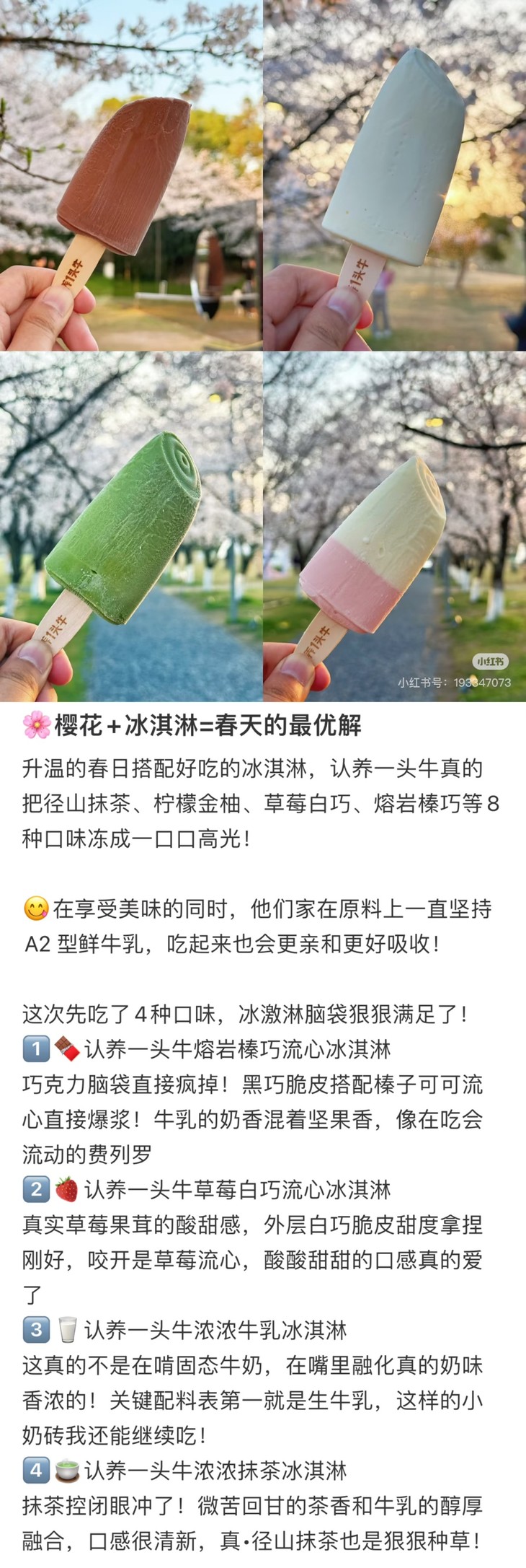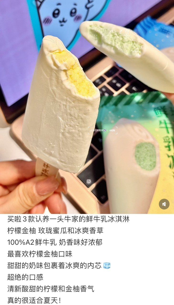 夏天到啦,冰淇淋还是要上的!除了一直在吃的大毛子甜筒,认养一头牛棒棒冰也很不错吃哎,我收到都快一个月了,隔三差五来一支才终于吃完所有口味,支支美味!都是纯正牛乳为基底,醇厚香浓,还有些是有流心的,巨赞!略略贵,但值得尝尝的!