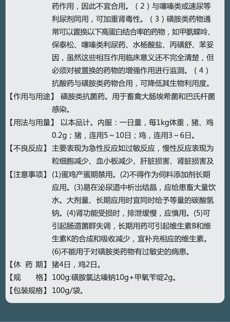 【达菌磺】巨龙动保敌菌磺10%磺胺氯达嗪钠粉100g
