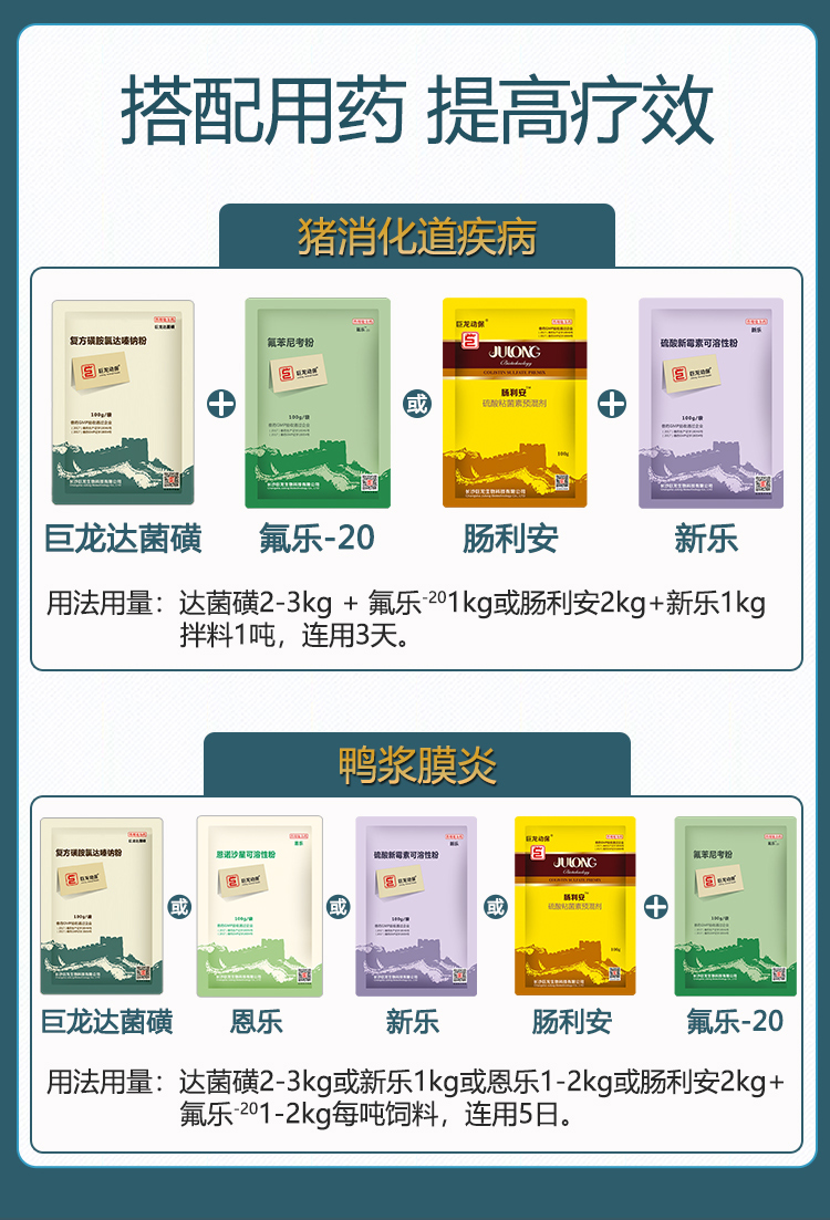 【氟乐10-水溶】巨龙动保氟乐-10氟苯尼考粉(可溶)10%100g/500g