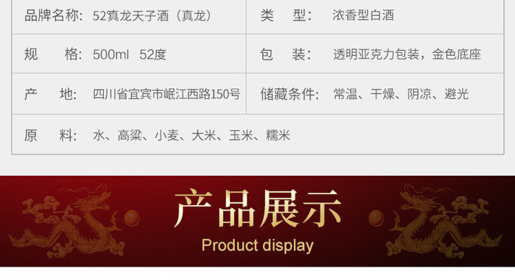 52度真龙天子酒(真龙)浓香型白酒500ml(单瓶装)