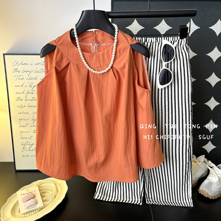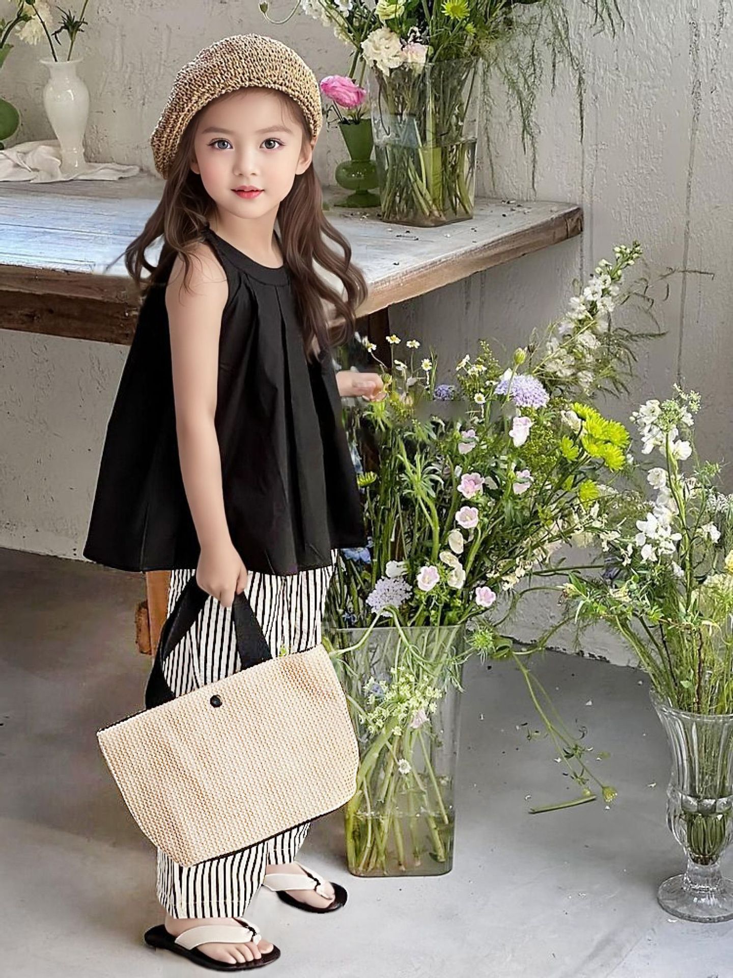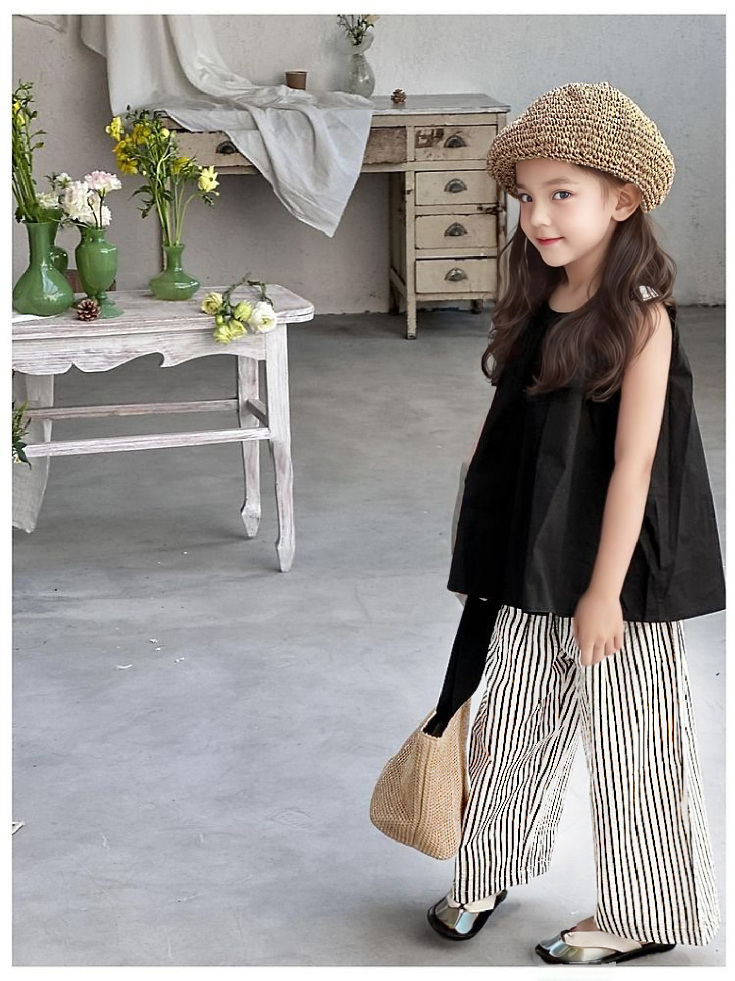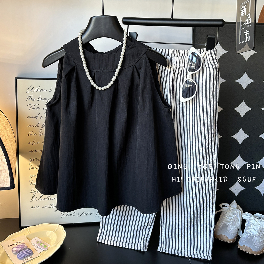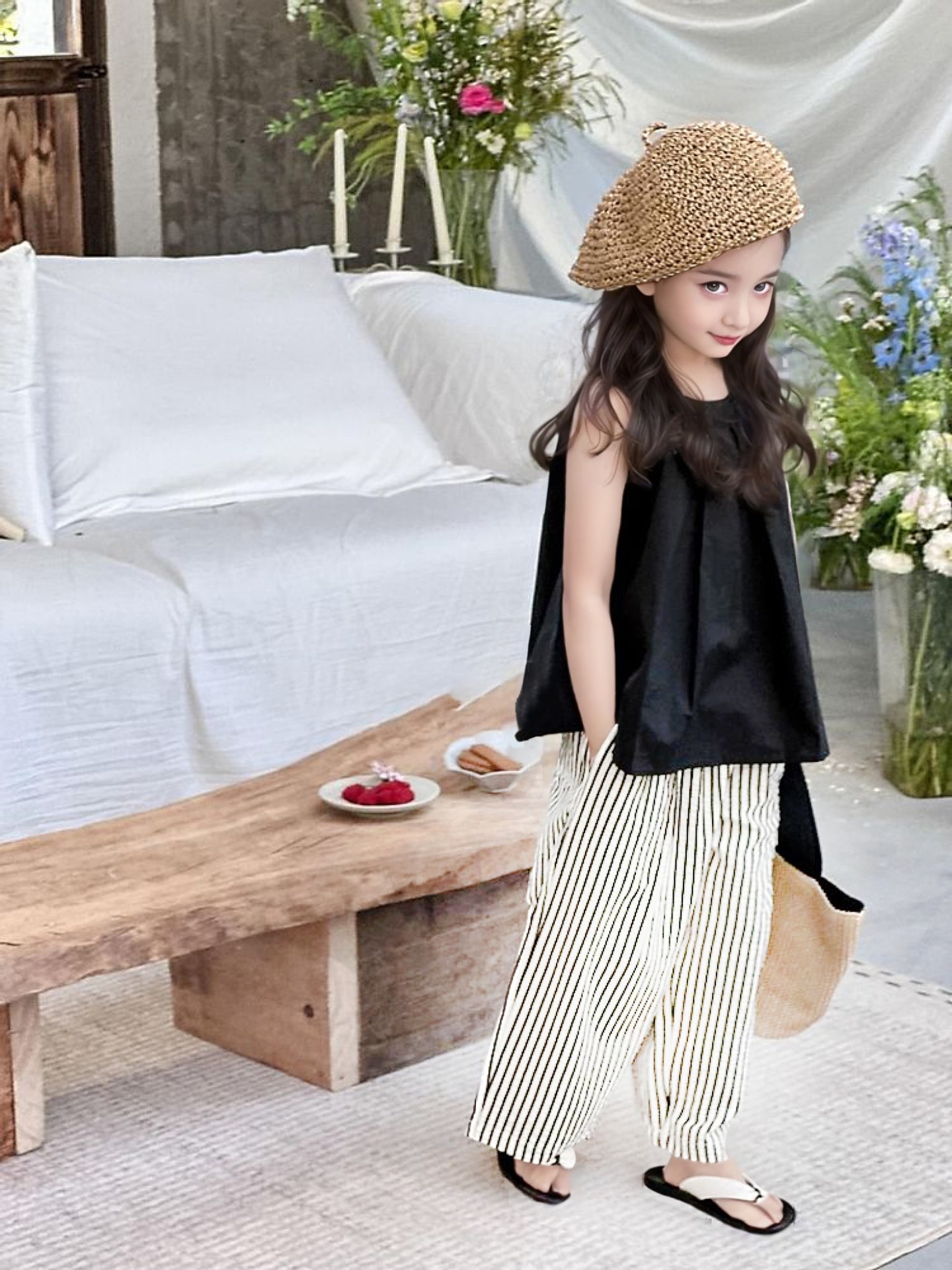 【甜美纯色裙裤套装】儿童裙裤套装女宝宝背心吊带裙直筒裤夏装女童纯色半身裙条纹裤子